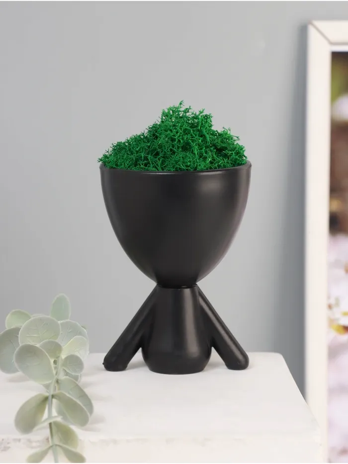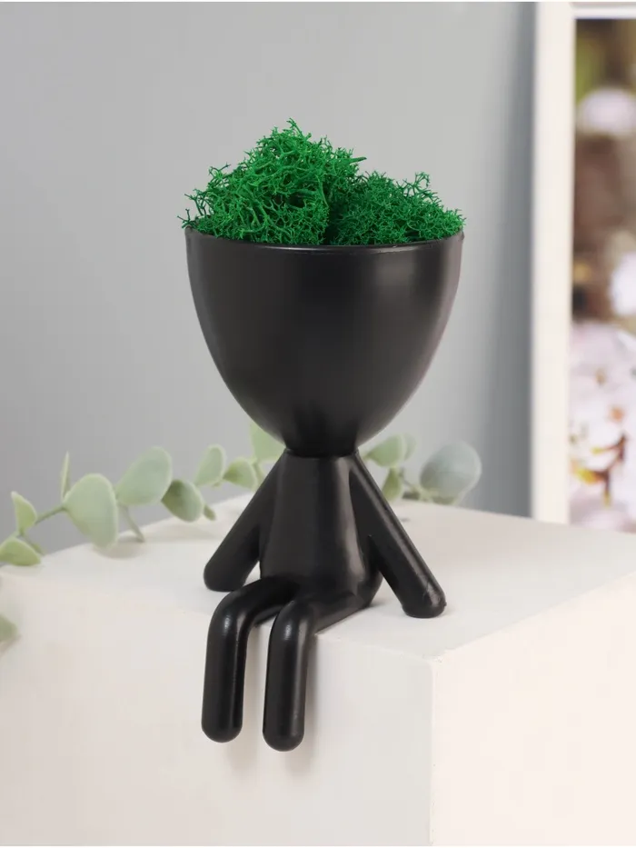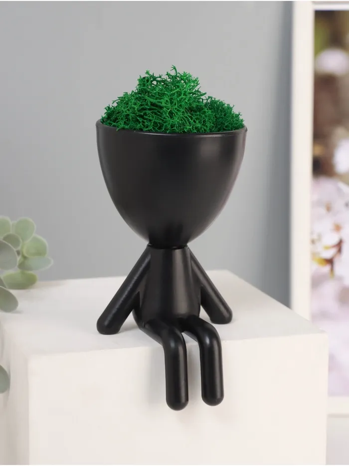 Стабилизированный мох в кашпо пластиковом «Мистер Грин сидит», 13×7.3×7.3 см, чёрный — Характеристики