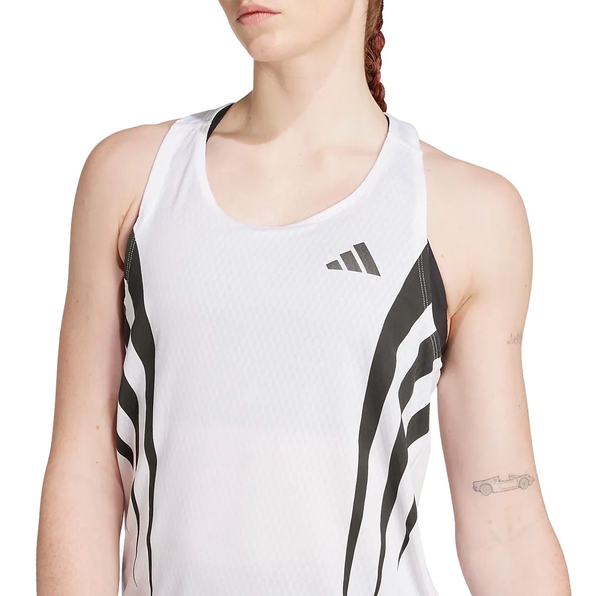 ● Беговая рубашка без рукавов ● Женские размеры ● Узкая посадка ● Спина борца увеличивает свободу движений ● Технология CLIMACOOL отводит влагу. Размеры: XL, S, M | Цвета: Белый