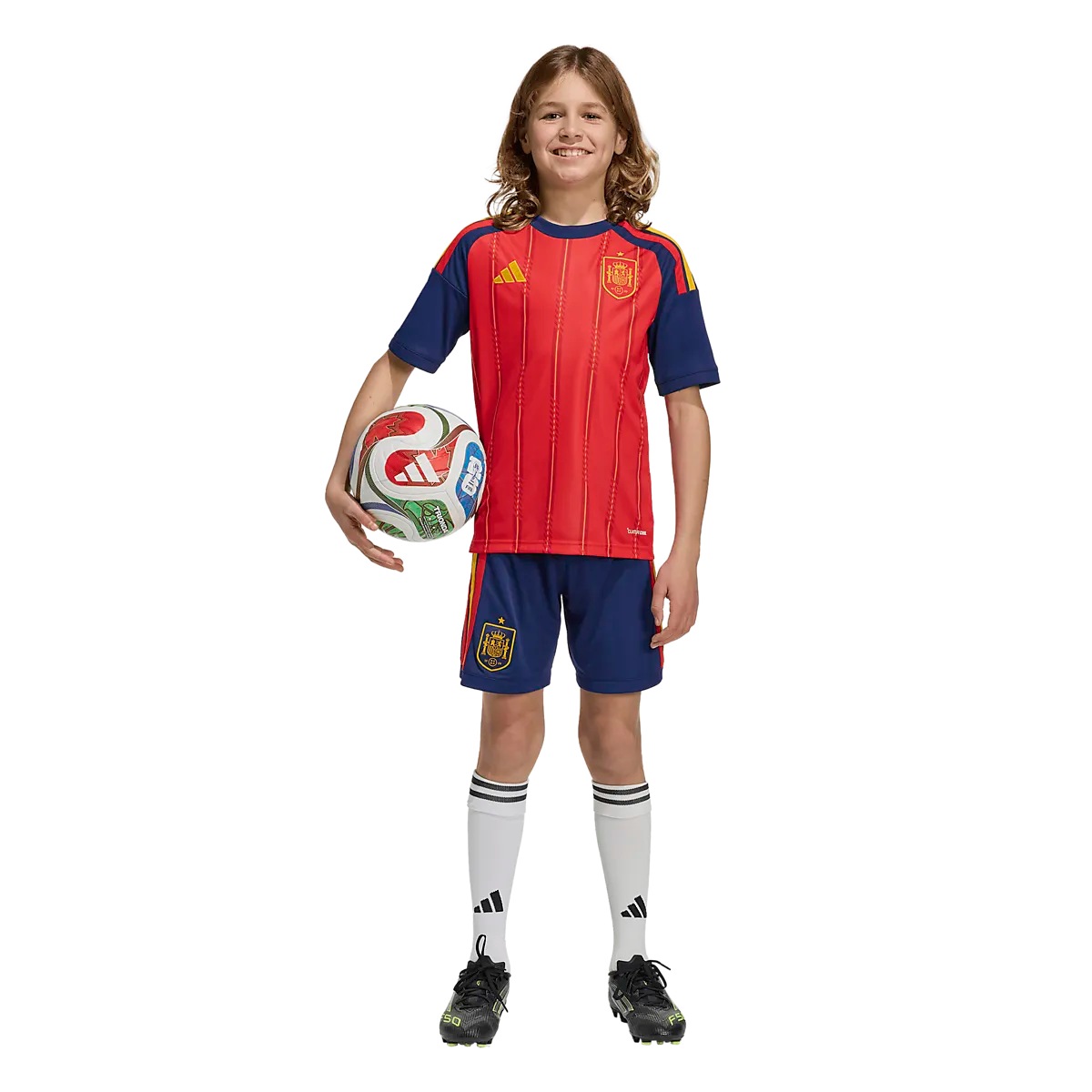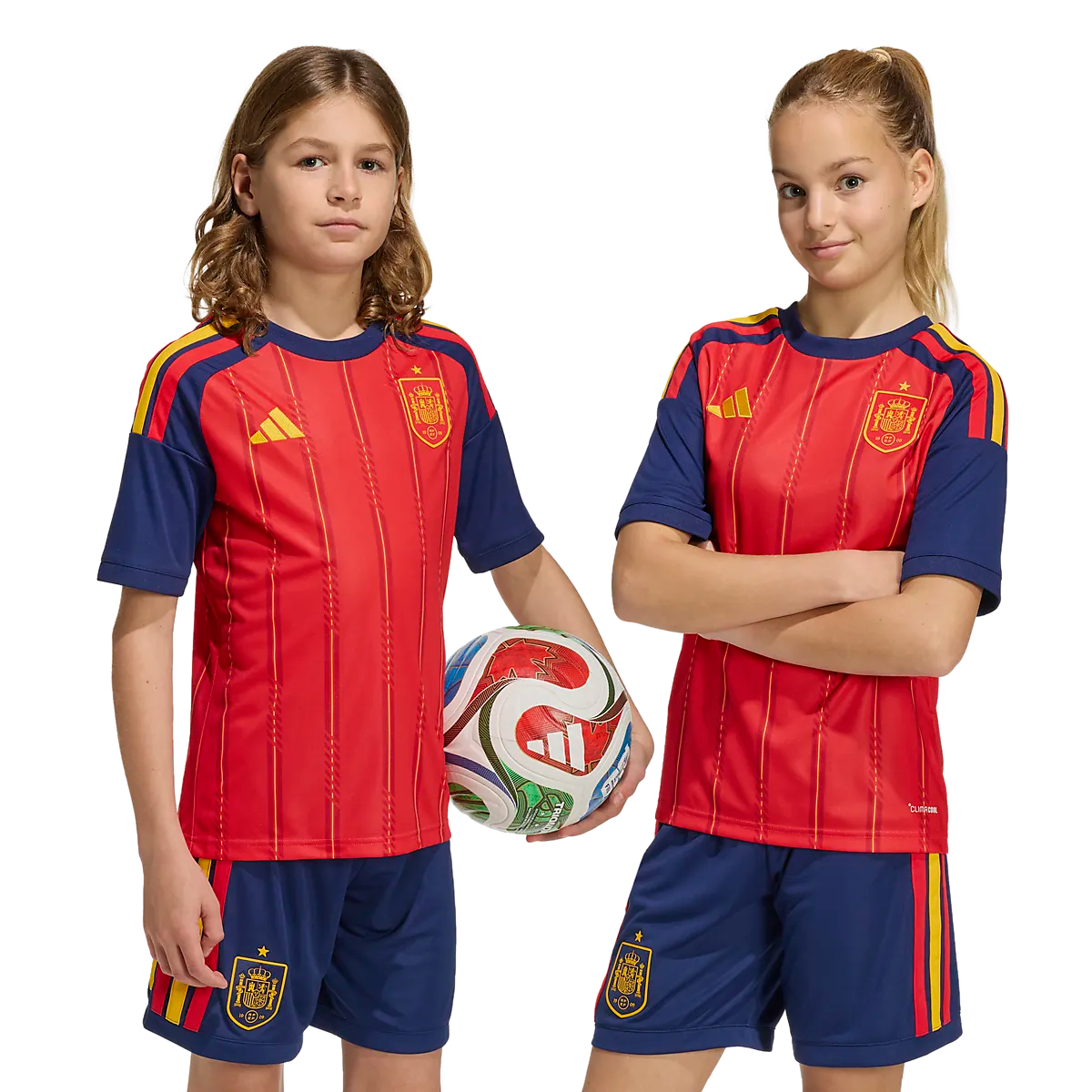 ● Форма сборной Испании 2026 ● Детские размеры 128–164. ● Комплект из рубашки и шорт. ● Технология Climacool, отводящая влагу. Размеры: 128, 140, 152, 164 | Цвета: Вивред