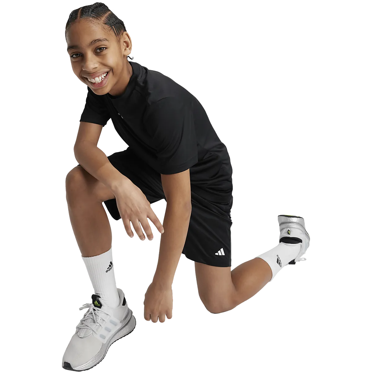 ● Тренировочные шорты ● Детские размеры ● Эластичная талия со шнурком ● Легкий и гибкий материал ● Два боковых кармана ● Технология впитывания влаги AEROREADY. ● Дышащие сетчатые панели по бокам. Размеры: 128, 140, 152, 176 | Цвета: Черный/белый