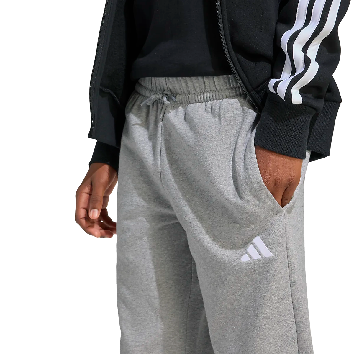 ● Колледж брюки ● Детские размеры ● Мягкая матовая внутренняя часть ● Эластичная талия со шнурком ● Два боковых кармана ● Эластичная резинка в отверстиях для ног. ● 71% хлопок и 29% переработанный полиэстер. Размеры: 128 | Цвета: Мгрей/Белый