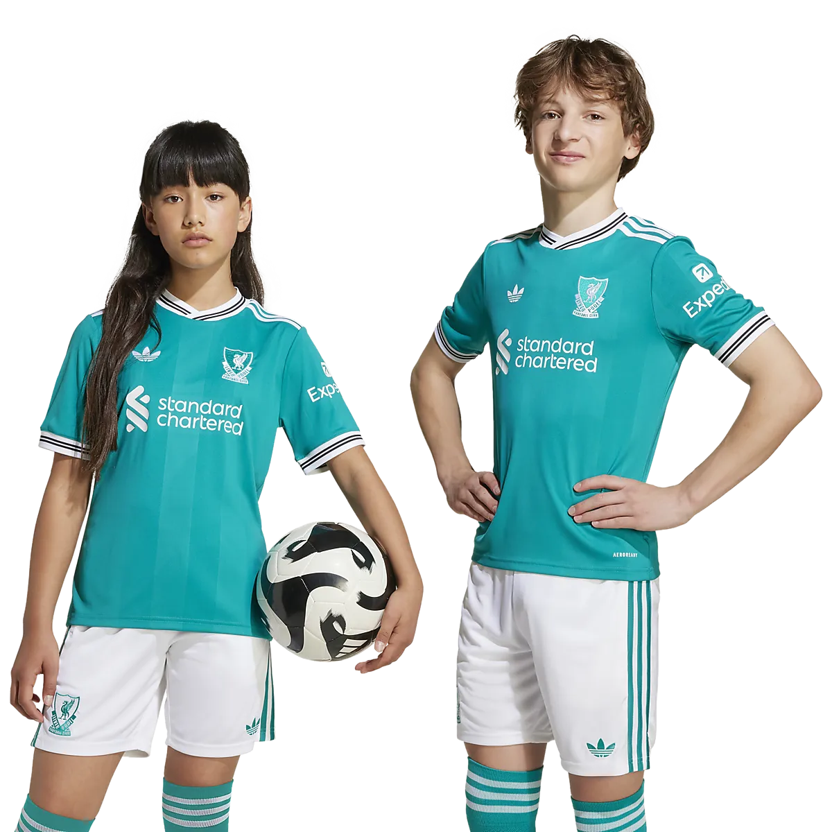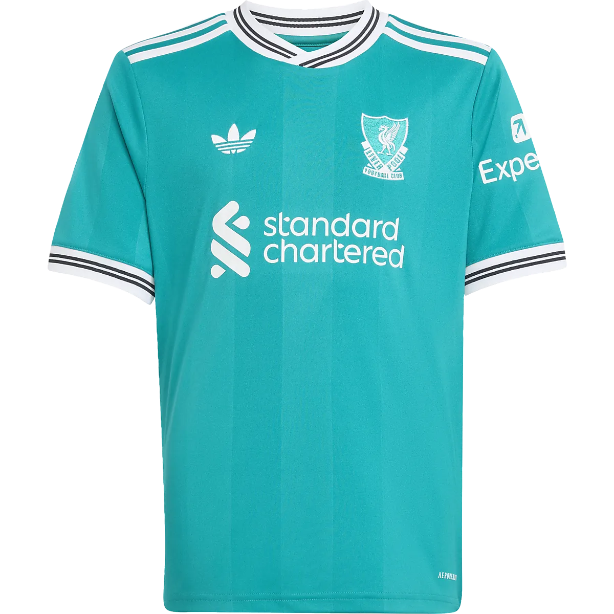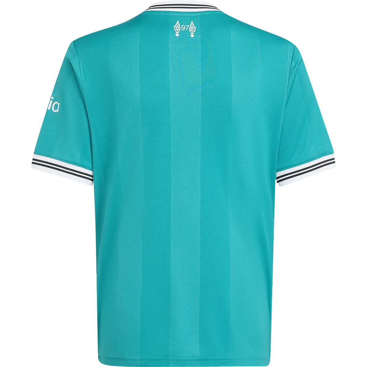 ● Футболка клубной команды ● Детские размеры ● Круглый вырез горловины ● Эмблема ФК «Ливерпуль» на груди. ● Реплика третьей футболки Ливерпуля 2025-2026 гг. ● Технология впитывания влаги AEROREADY. Размеры: 128, 164, 140, 176, 152 | Цвета: Сигре