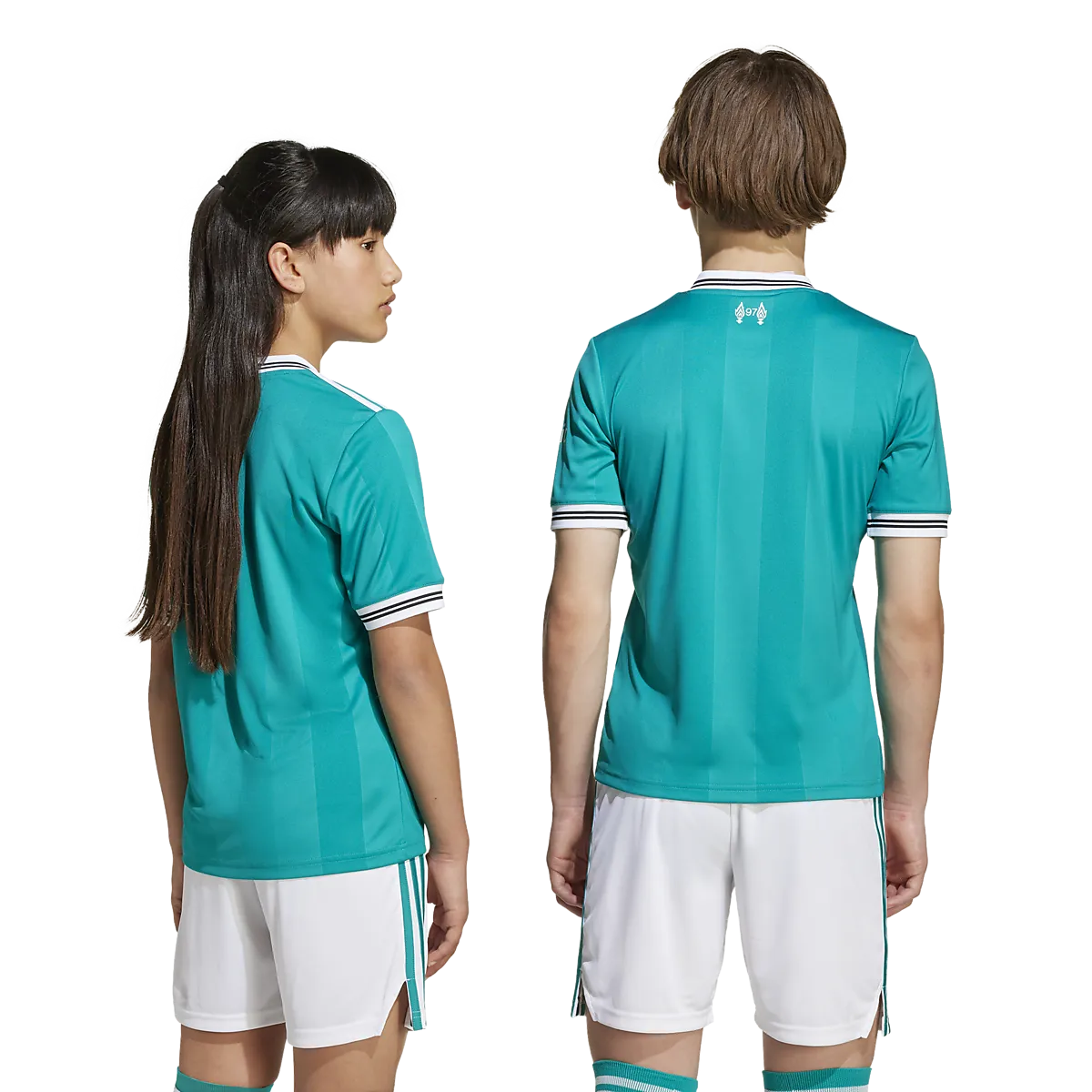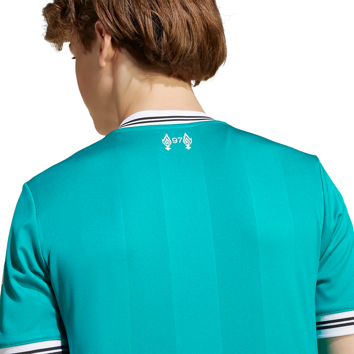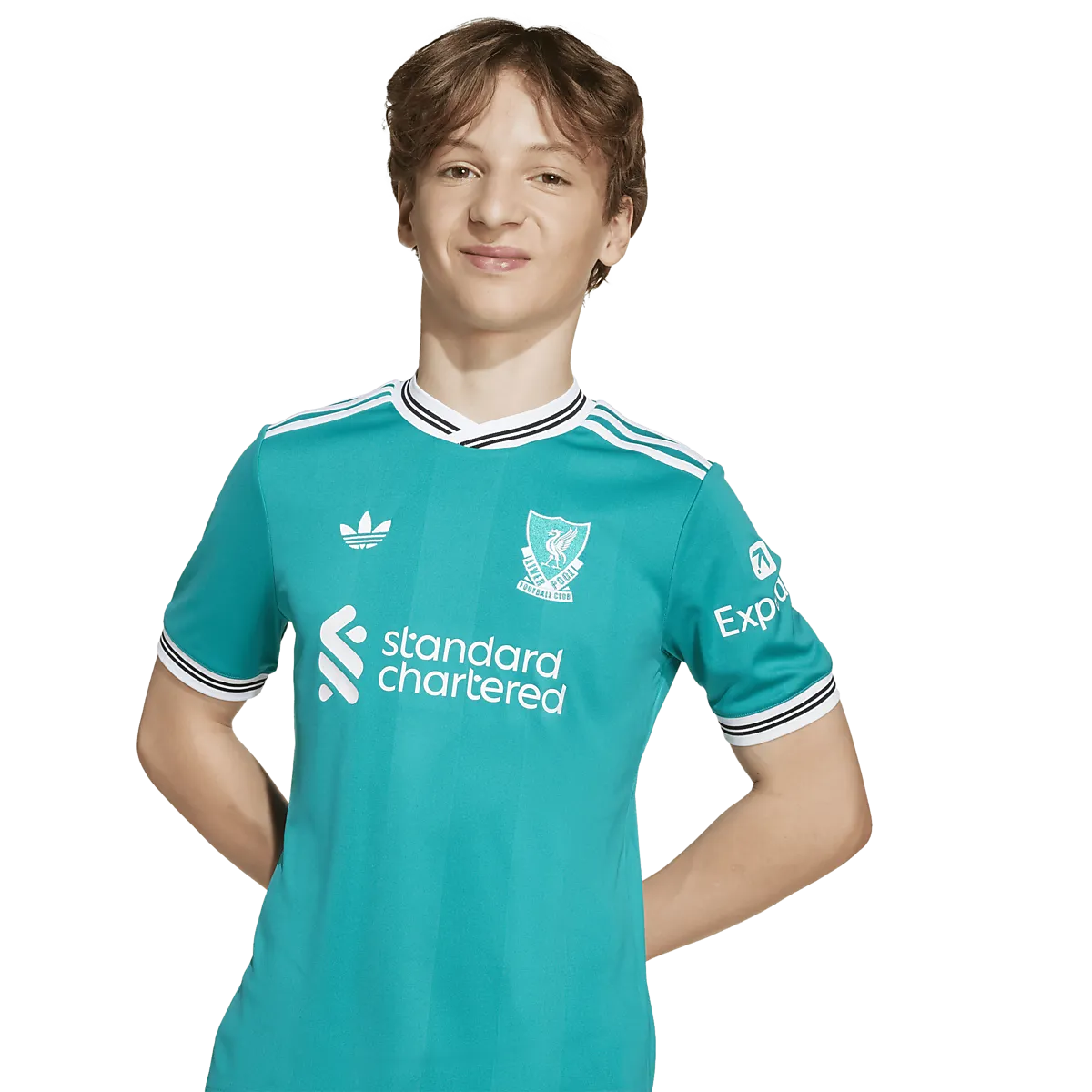 ● Футболка клубной команды ● Детские размеры ● Круглый вырез горловины ● Эмблема ФК «Ливерпуль» на груди. ● Реплика третьей футболки Ливерпуля 2025-2026 гг. ● Технология впитывания влаги AEROREADY. Размеры: 128, 164, 140, 176, 152 | Цвета: Сигре