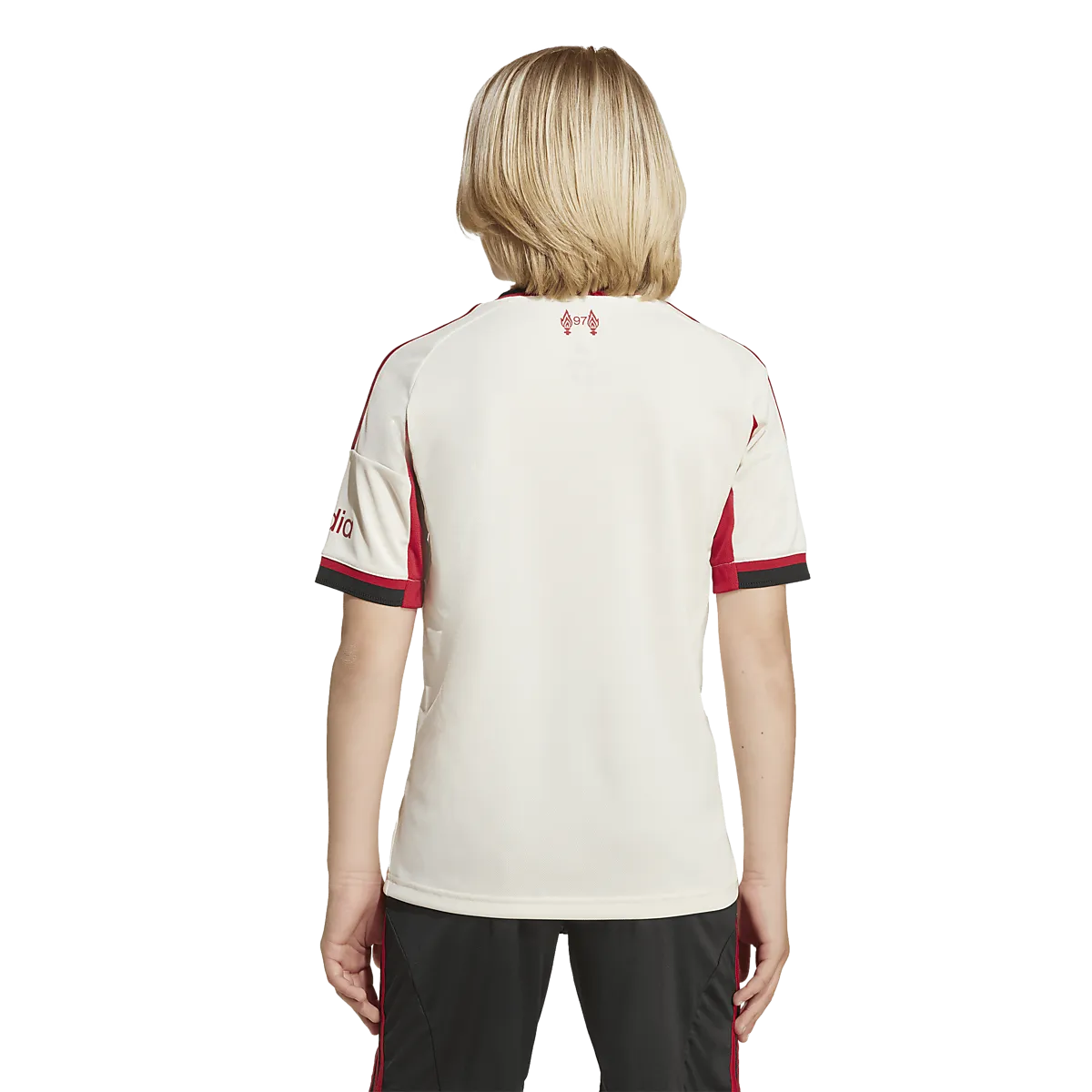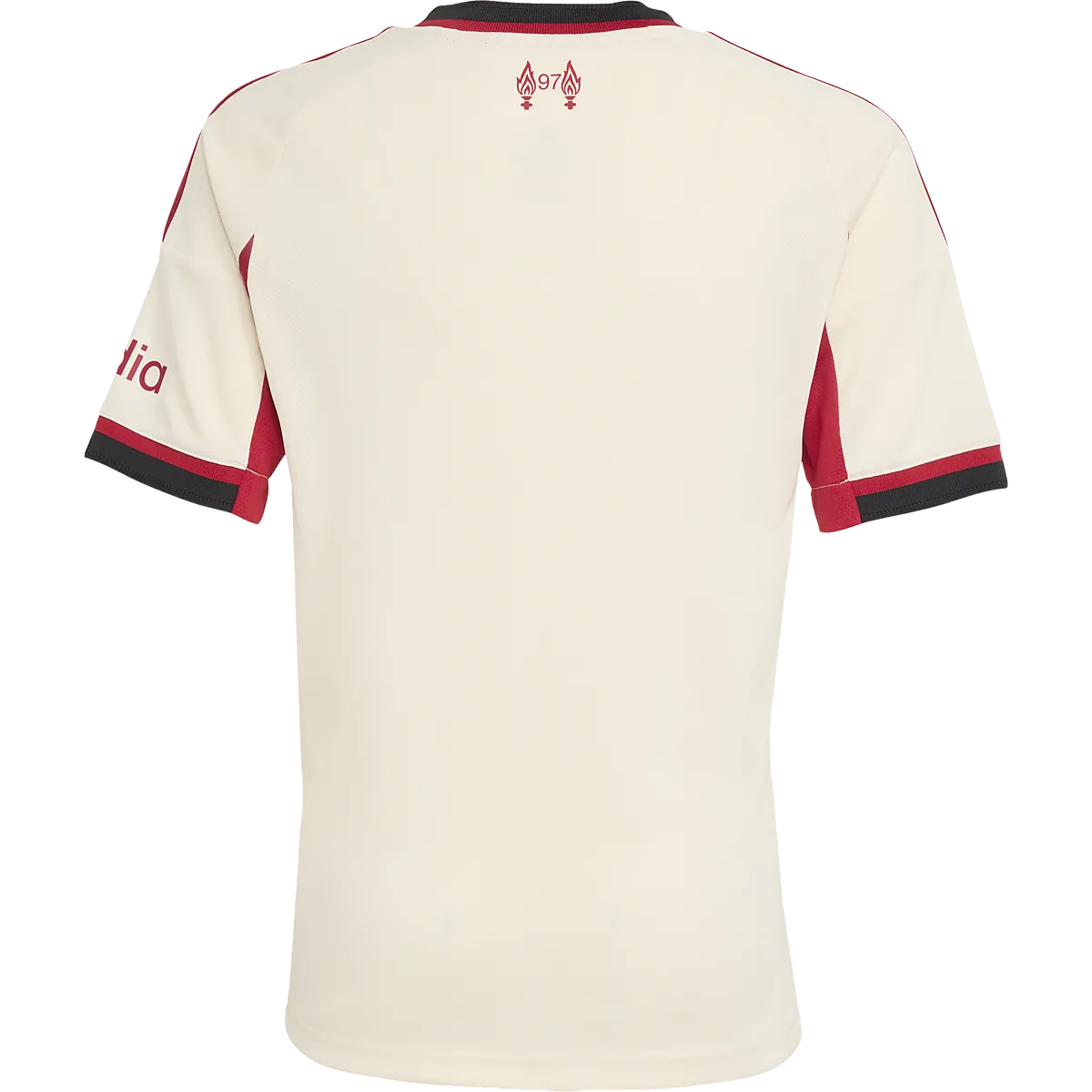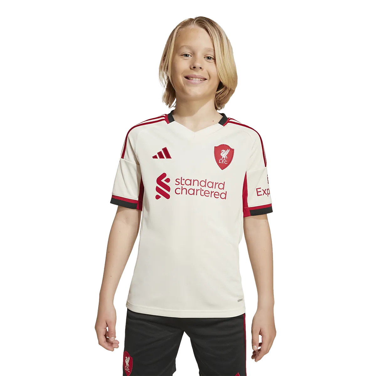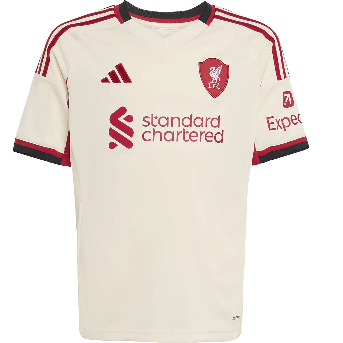 ● Футболка клубной команды ● Детские размеры ● V-образный вырез ● Тканый значок команды клуба ● Реплика выездной футболки Ливерпуля 2025-2026 гг. ● Впитывание влаги AEROREADY Размеры: 128, 140, 152, 164, 176 | Цвета: Вонви
