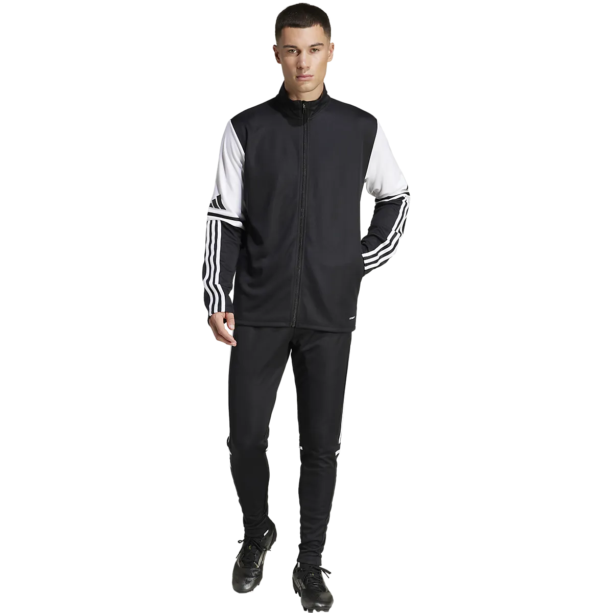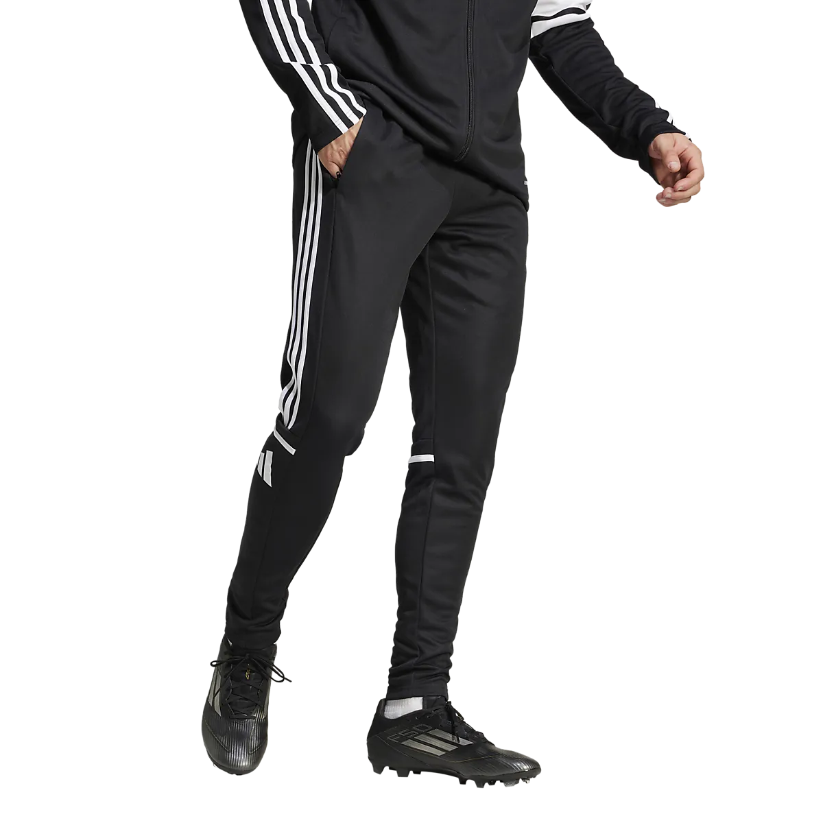 ● Тренировочные брюки ● Мужские размеры ● Конические отверстия для ног ● Эластичная талия со шнурком ● Боковые карманы на молнии ● Молния в ногах ● Технология впитывания влаги Aeroready. Размеры: S, M, L, XL, 2XL | Цвета: Черный/Белый