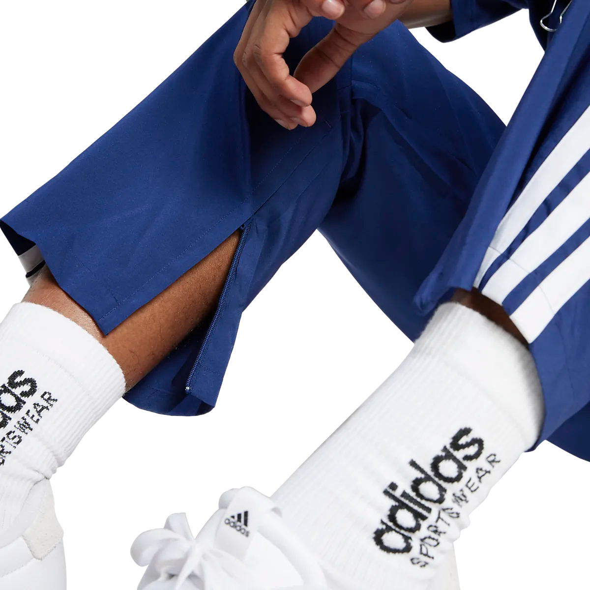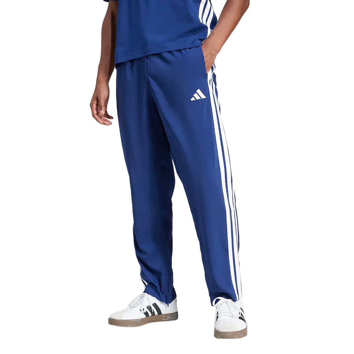 ● Тренировочные брюки ● Мужские размеры ● Эластичная талия со шнурком ● Боковые карманы ● Молния на ногах Размеры: S, M, L, XL | Цвета: Темно-синий/Белый, Черный/Белый