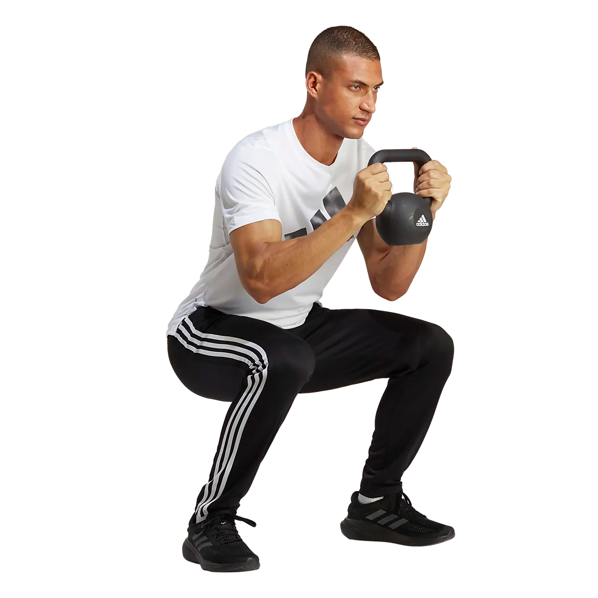 ● Тренировочные брюки ● Мужские размеры ● Конические отверстия для ног ● Эластичная талия со шнурком ● Боковые карманы на молнии ● Впитывает влагу Aeroready Цвета: Черный/Белый