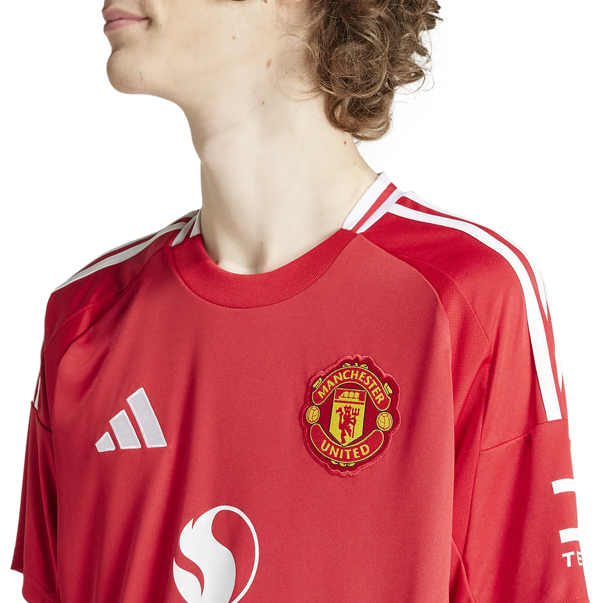 ● Футболка клубной команды ● Мужские размеры ● Узкая модель ● Дышащий сетчатый материал по бокам. ● Впитывает влагу Aeroready ● Реплика домашней футболки Манчестер Юнайтед 2024-2025 гг. Размеры: L, XS, S, M, XL, 2XL | Цвета: Муфред