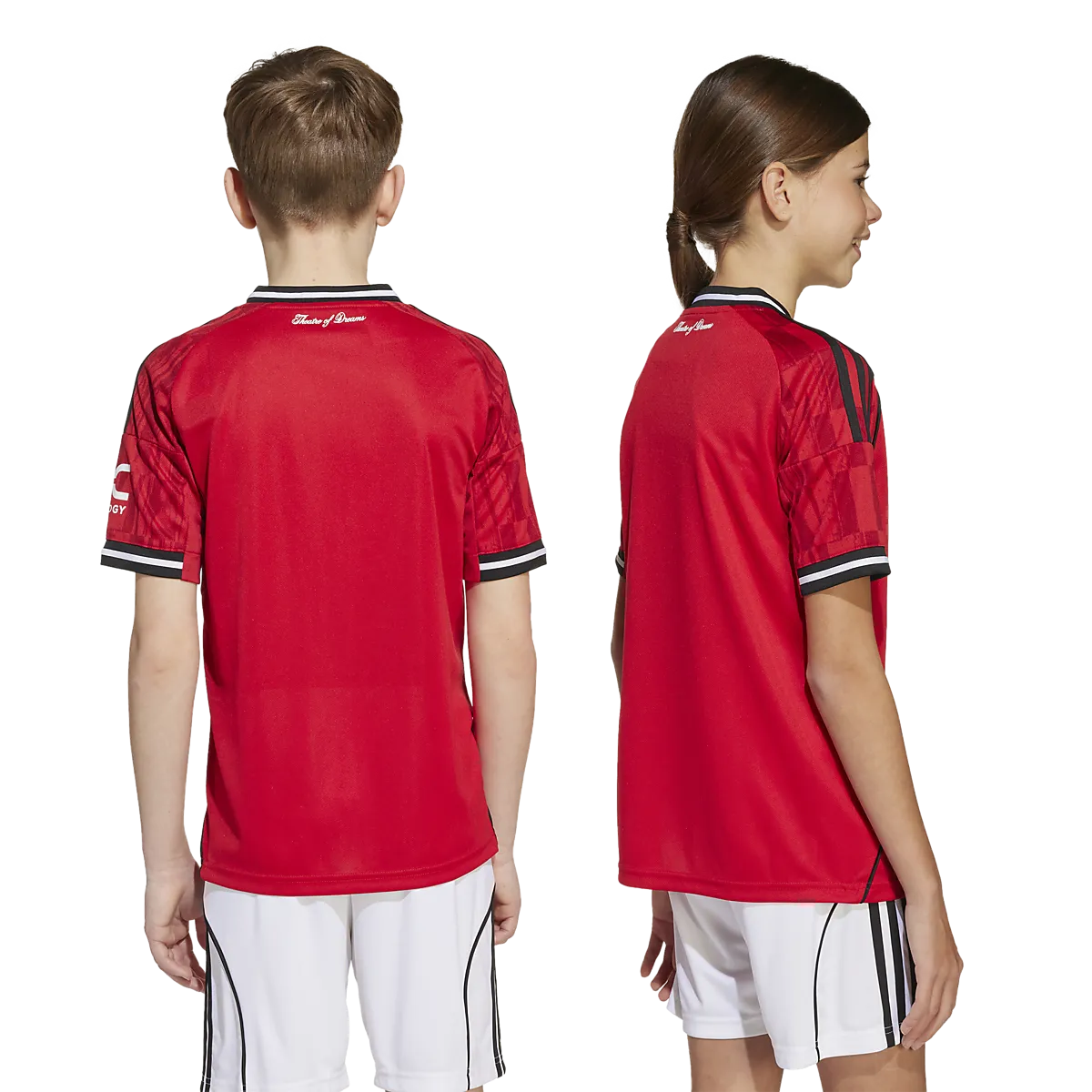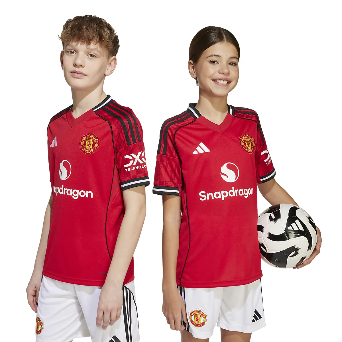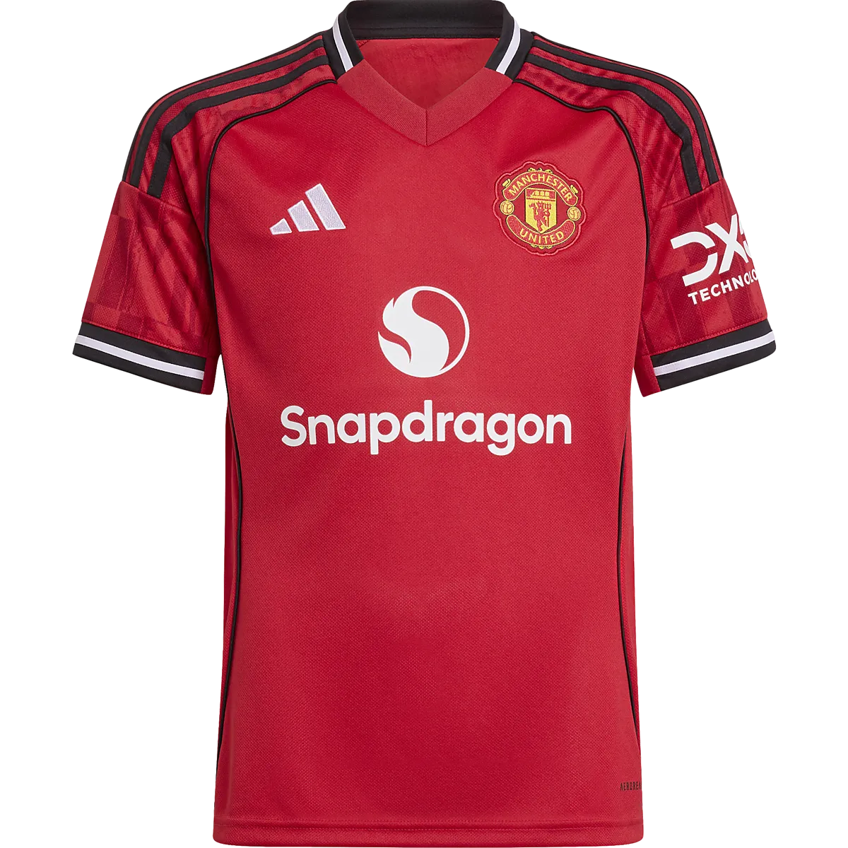 ● Футболка клубной команды ● Детские размеры ● Изготовлен из переработанного полиэстера. ● Впитывание влаги AEROREADY ● Значок Манчестер Юнайтед ● Реплика домашней футболки Манчестер Юнайтед 2025-2026 гг. Размеры: 128, 140, 152, 164, 176 | Цвета: Муфред
