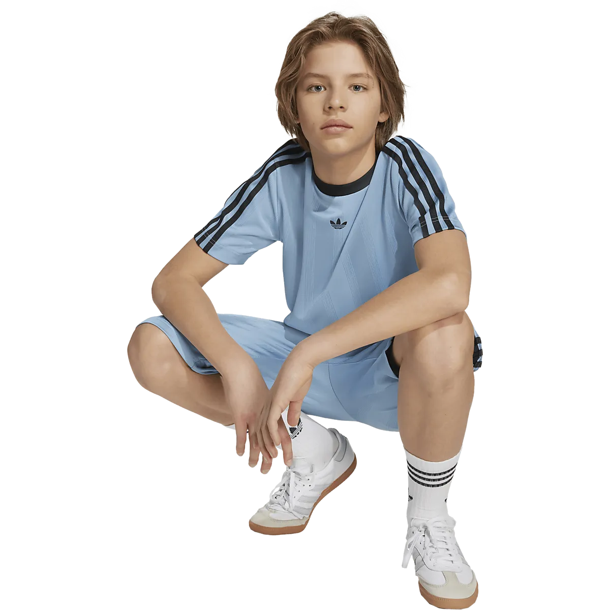 ● футболка ● Детские размеры ● Свободная, непринужденная посадка ● Модель в футбольном стиле ● Жаккардовый узор, вдохновленный мячом Teamgeist. Размеры: 128, 140, 164, 152, 176 | Цвета: Белый/черный, Пепельно-голубой/черный