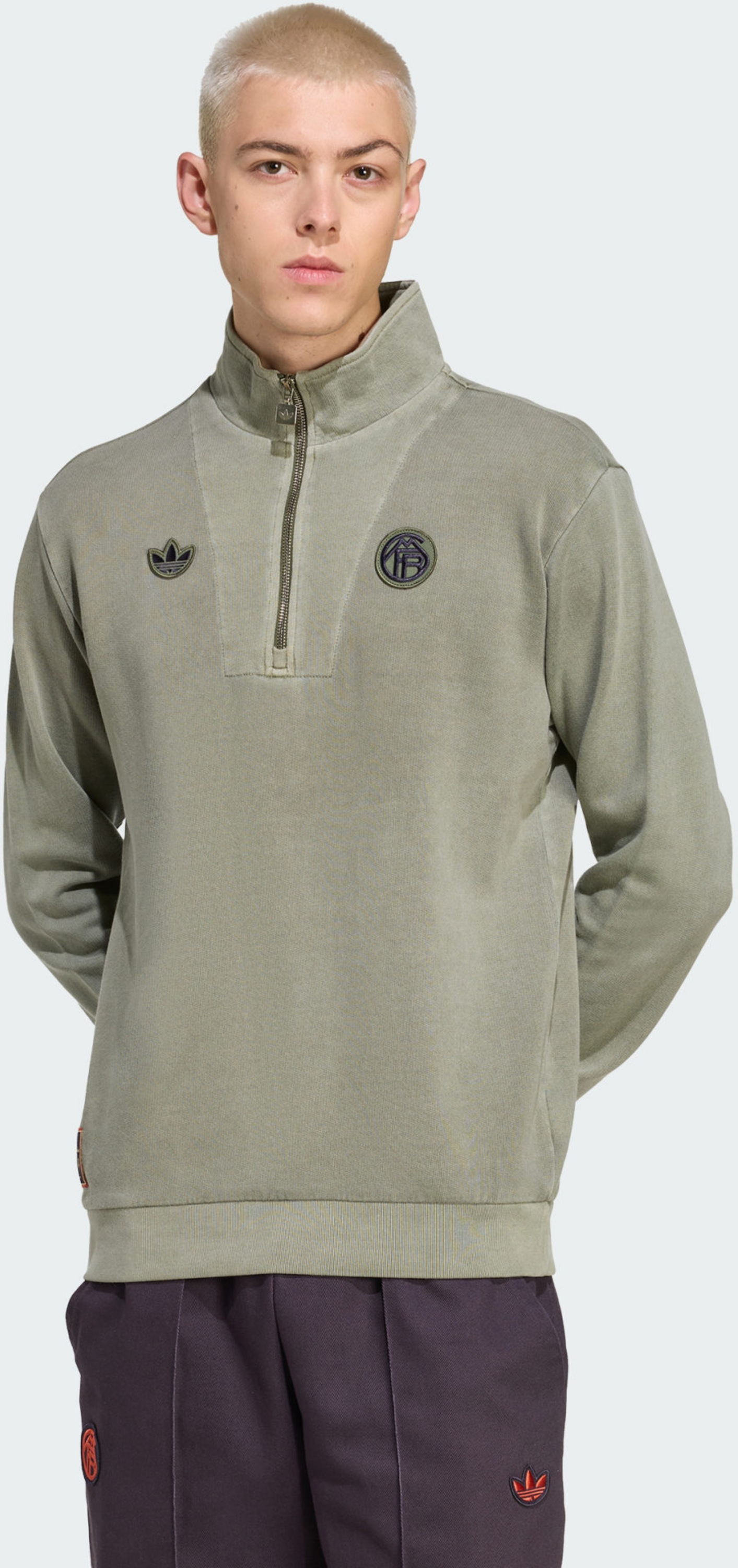 ● Регулярная посадка ● Половинная молния ● 95% хлопок, 5% эластан. ● Вышитый герб ФК Бавария ● Доставка напрямую от партнера. Размеры: S, XS | Цвета: Базовый зеленый