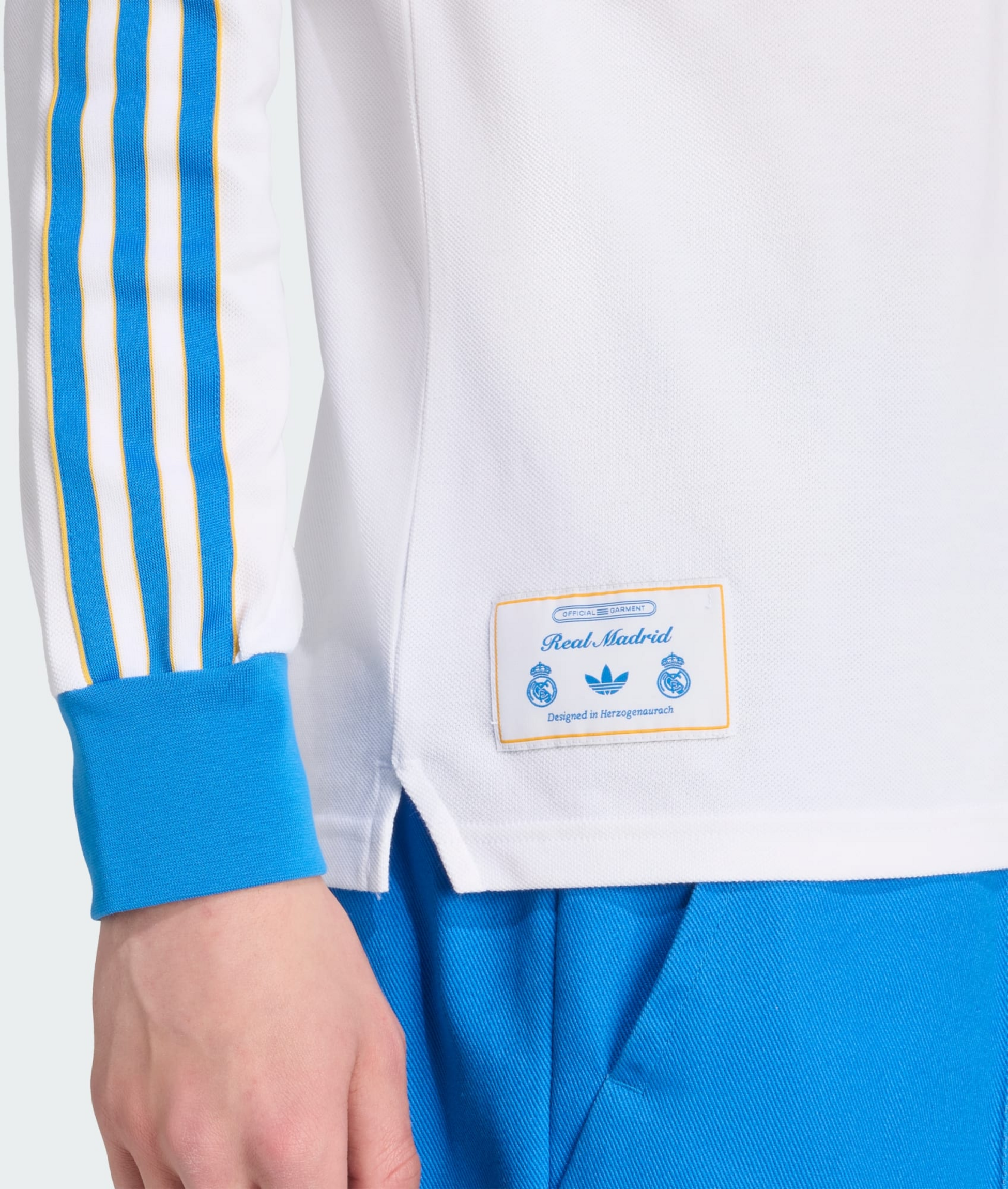 ● Регулярная посадка ● воротник-поло ● 70 % хлопок, 30 % полиэстер (переработанный). ● Ребристые манжеты ● Вышитый герб Реал Мадрида ● Доставка напрямую от партнера. Размеры: 2XL, S, XL, L | Цвета: Белая/Синяя птица