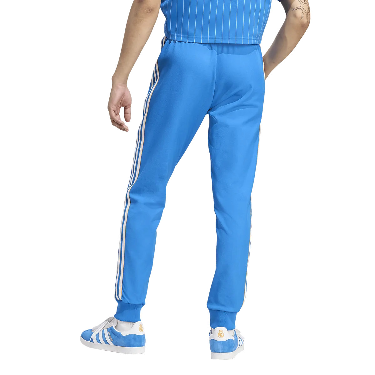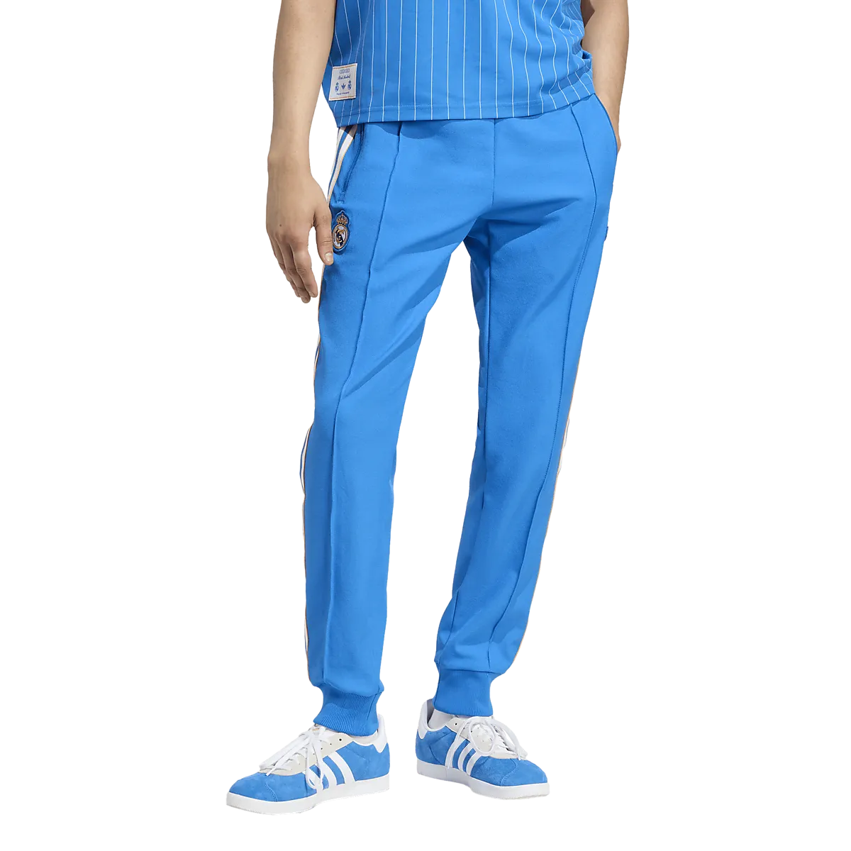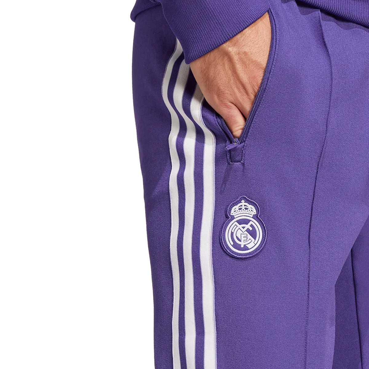 ● Штаны клубной команды ● Мужские размеры ● Узкая посадка ● Эластичная талия со шнурком ● Передние карманы на молнии ● Пружины в отверстиях для ног ● Пришитый значок Реал Мадрид Размеры: S, XL, XS, M, L, 2XL | Цвета: Юнипур, Блубир/Белый