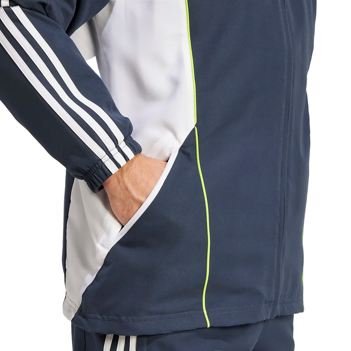 ● Куртка вентилятора ● Мужские размеры ● Умная посадка ● Боковые карманы на молнии ● Эластичные манжеты ● Значок Реал Мадрид на груди. ● 100% переработанный полиэстер Размеры: M, L | Цвета: Нтнави