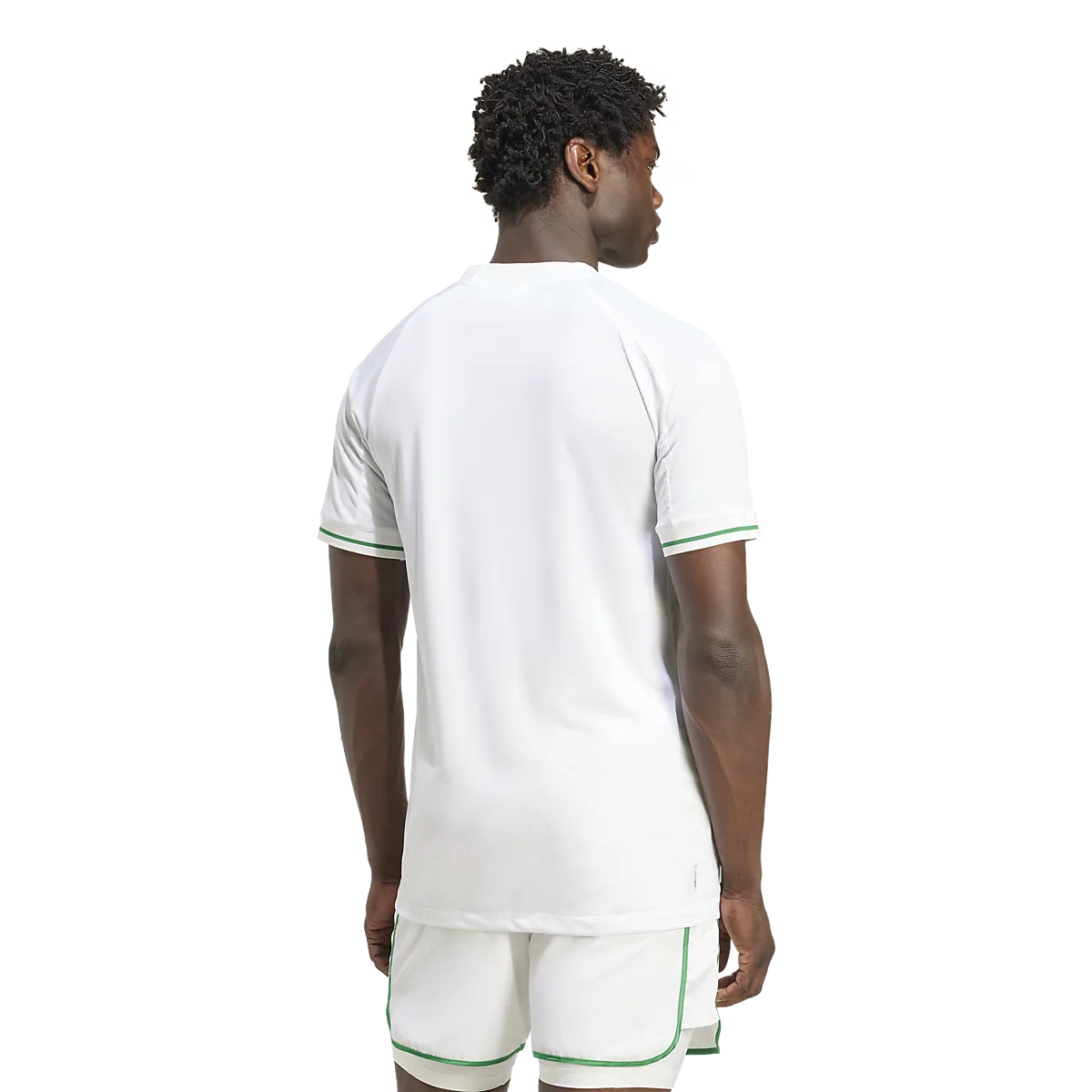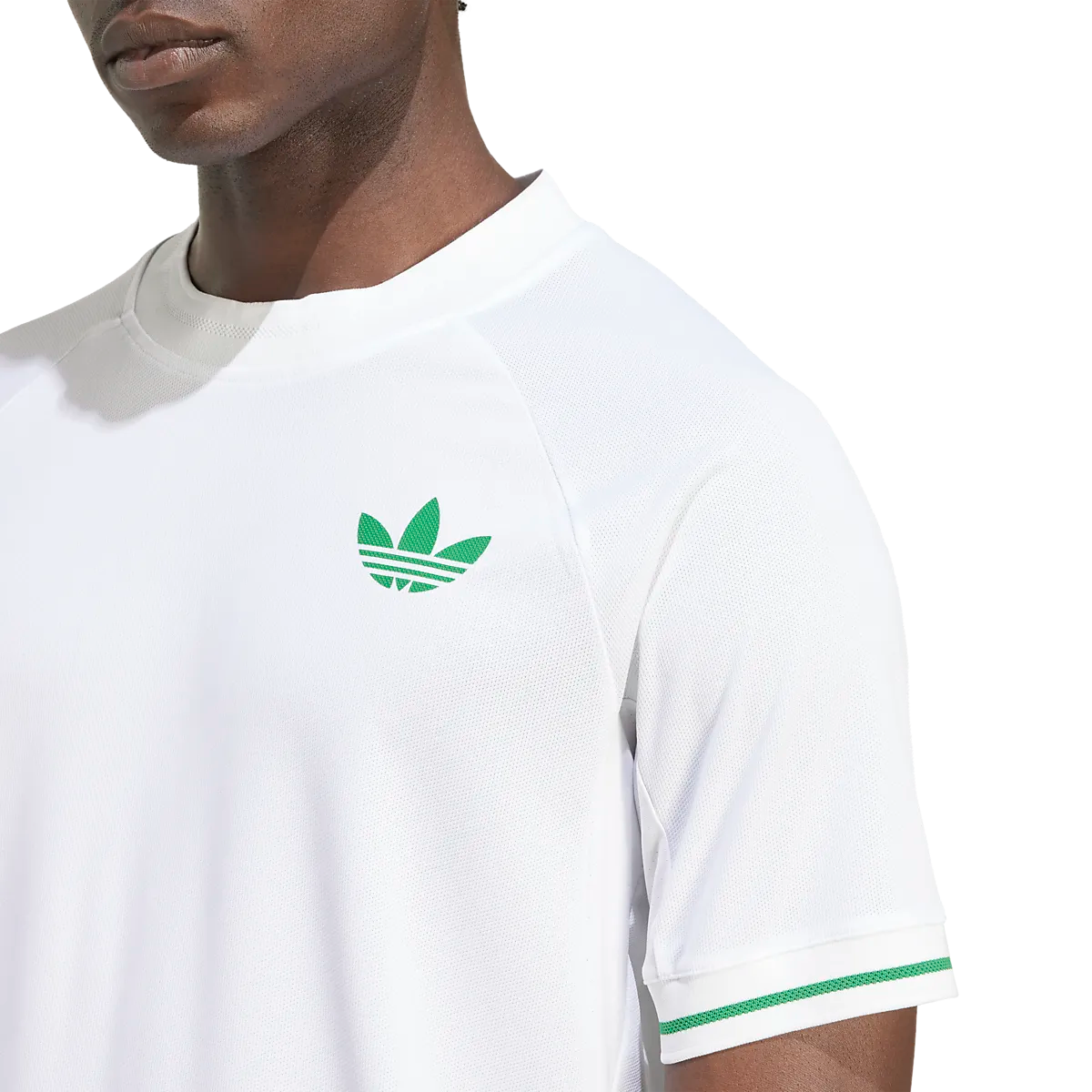 ● Тренировочная рубашка ● Мужские размеры ● Более узкая посадка ● Конструкция FreeLift увеличивает свободу передвижения. ● Впитывает влагу CLIMACOOL Размеры: S | Цвета: Белый, Зеленый