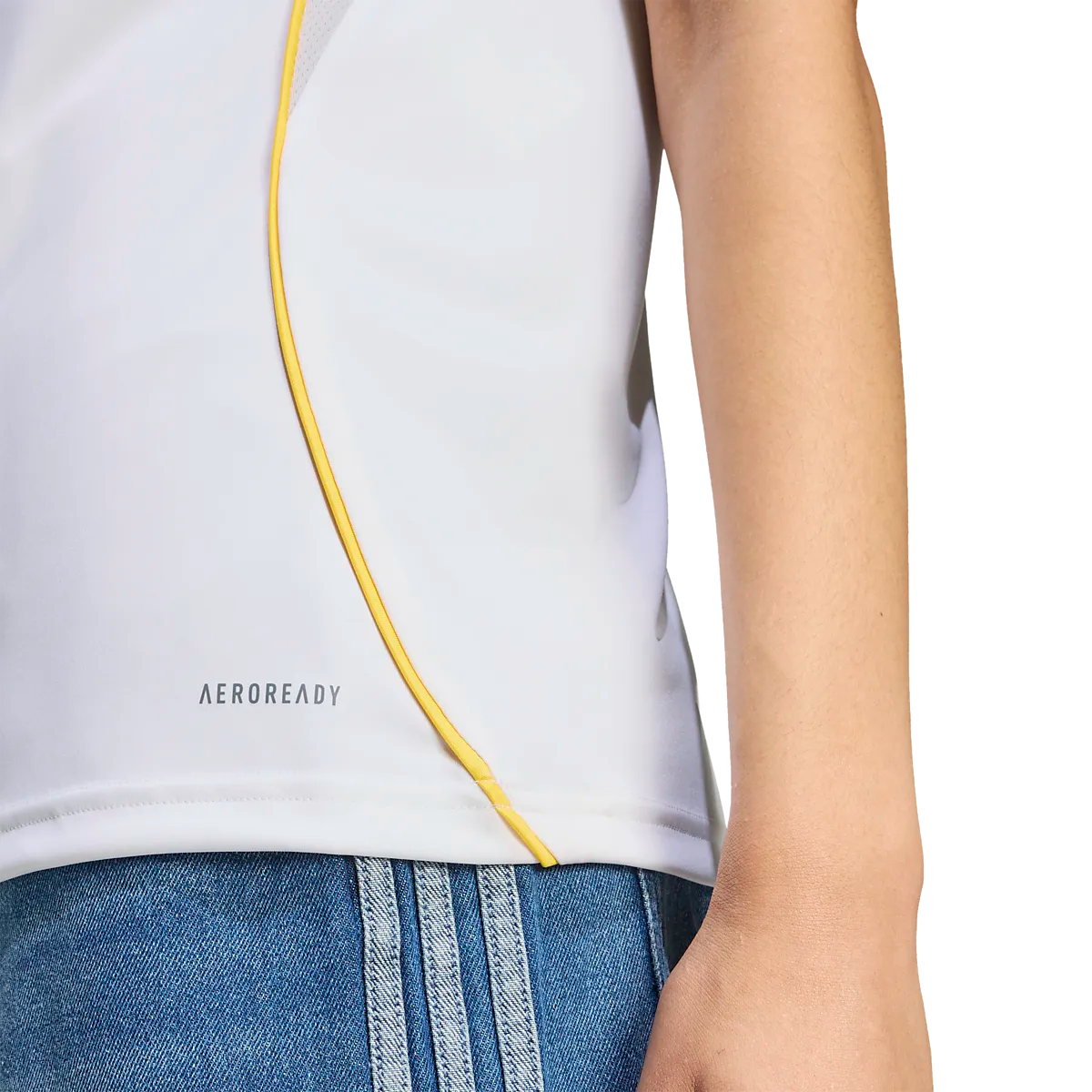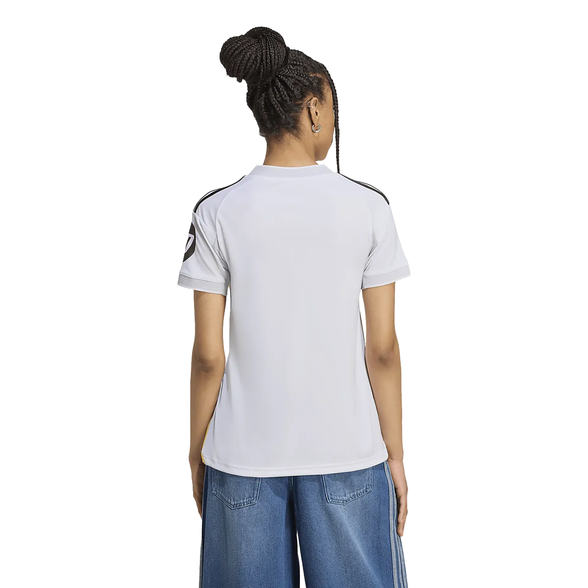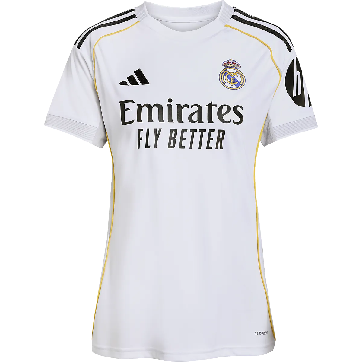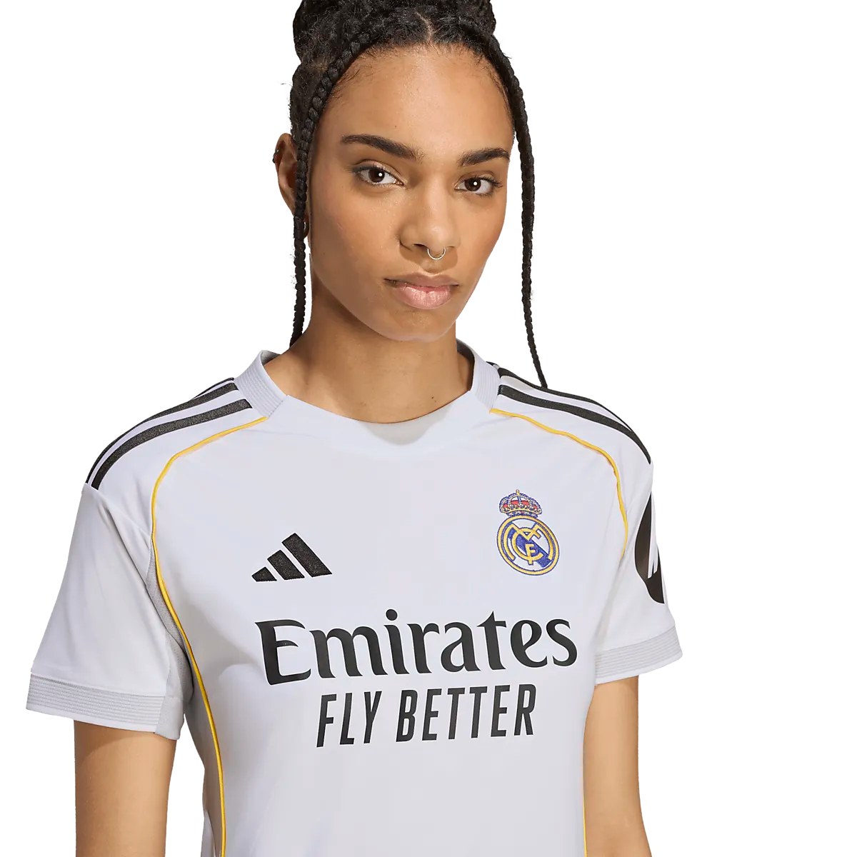 ● Футболка клубной команды ● Женские размеры ● Впитывание влаги AEROREADY ● Вышитый значок Реал Мадрид ● Реплика домашней футболки Реал Мадрид 2025-2026 гг. Размеры: XS, S, M, L, XL, 2XL | Цвета: Белый