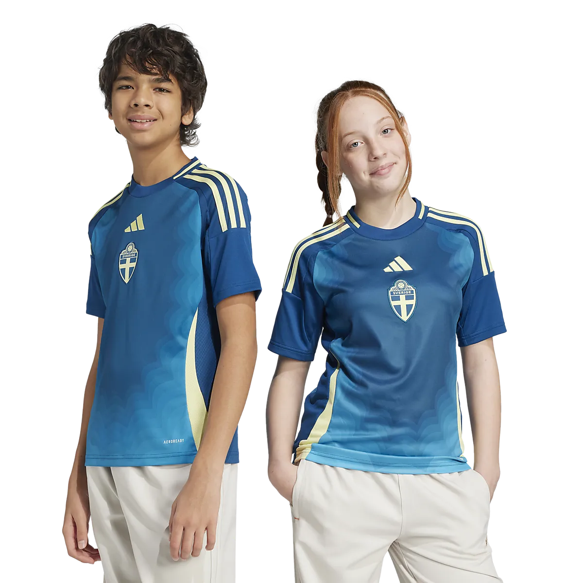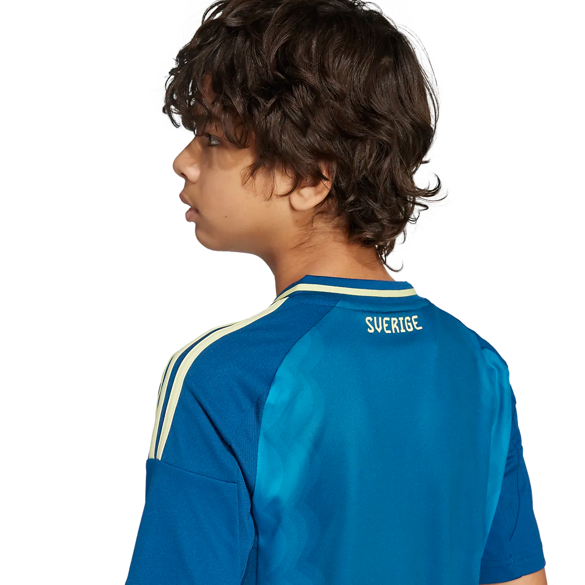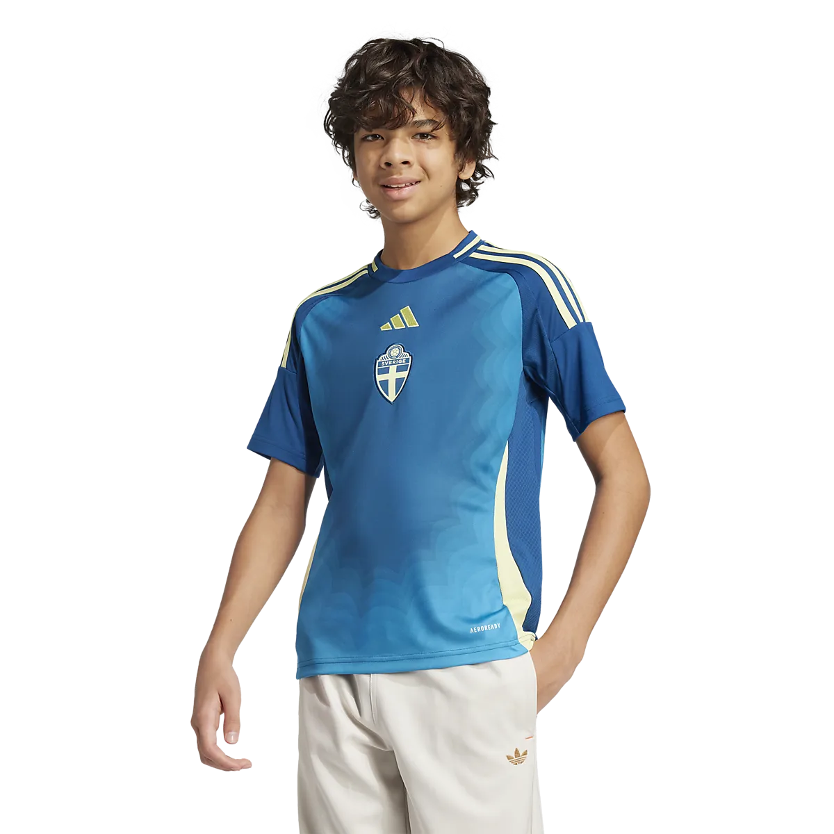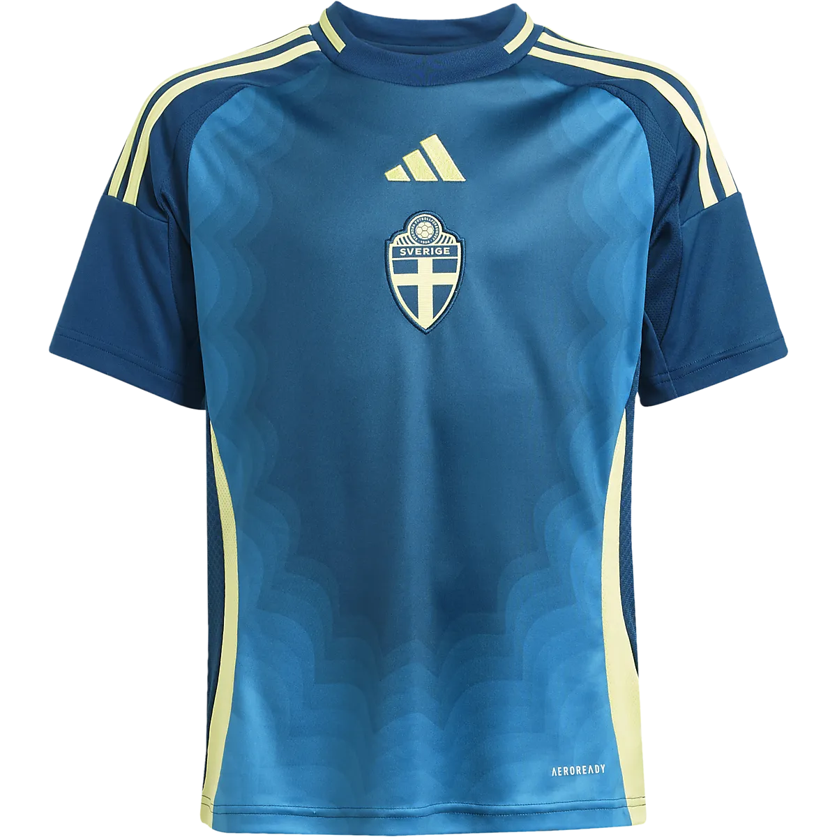 ● Рубашка болельщика ● Детские размеры ● Впитывает влагу Aeroready ● Реплика выездной футболки Швеции 2024 года. Цвета: Тенабл, Легмар