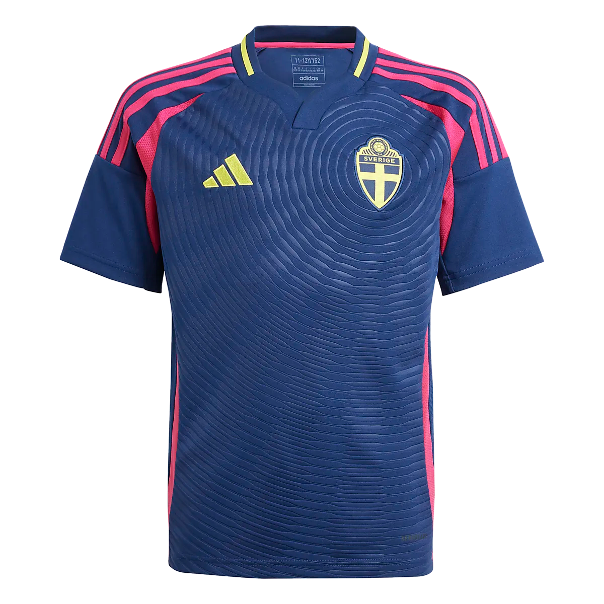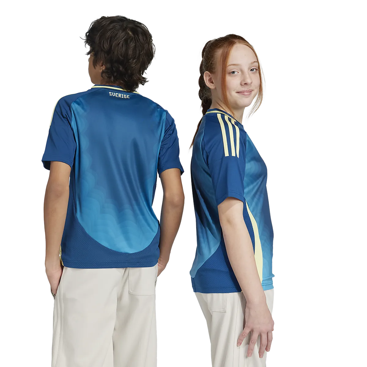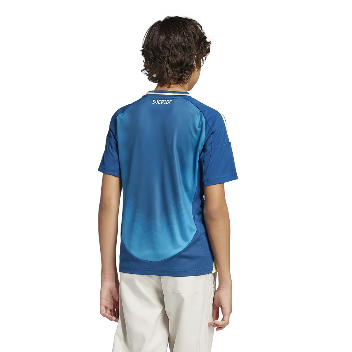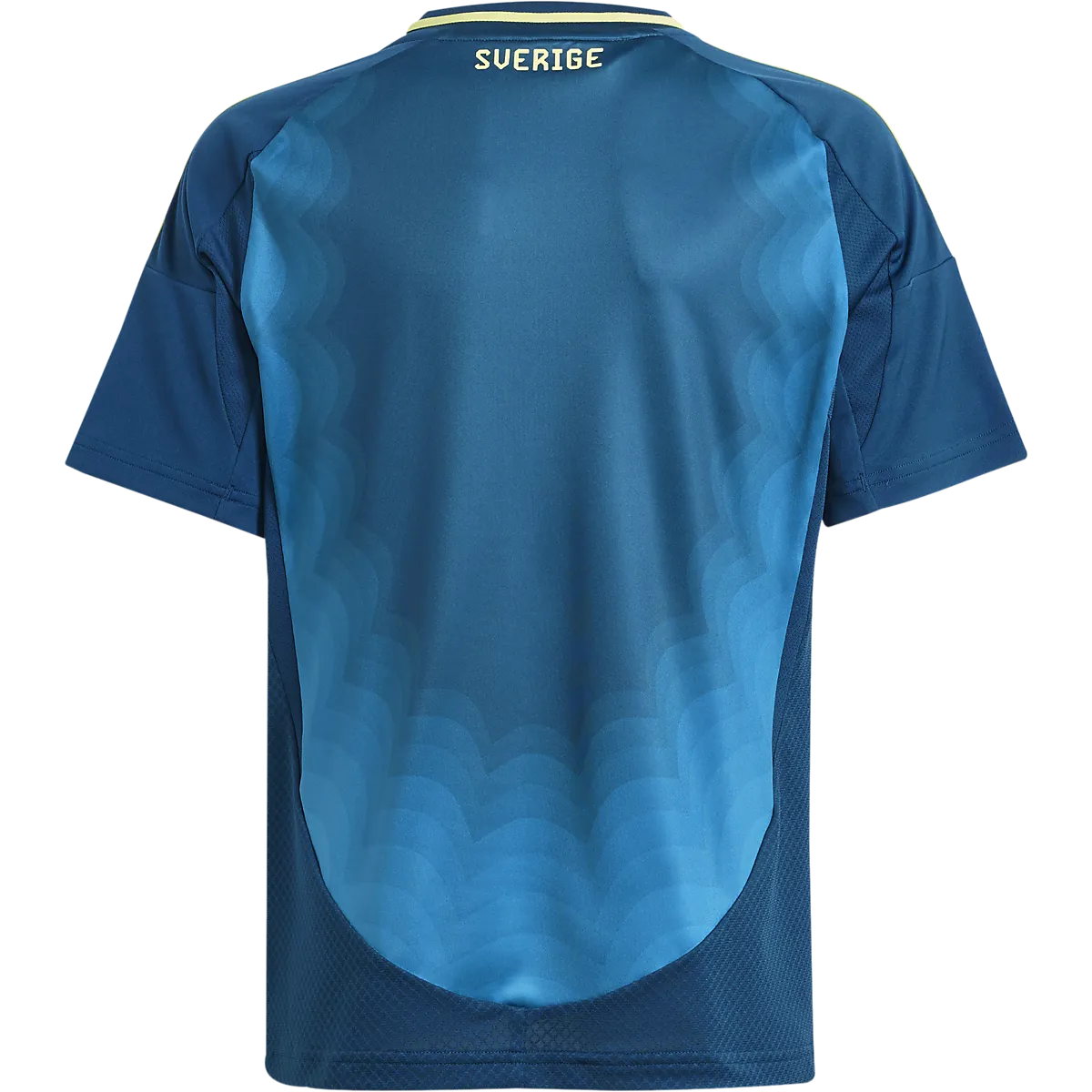 ● Рубашка болельщика ● Детские размеры ● Впитывает влагу Aeroready ● Реплика выездной футболки Швеции 2024 года. Цвета: Тенабл, Легмар