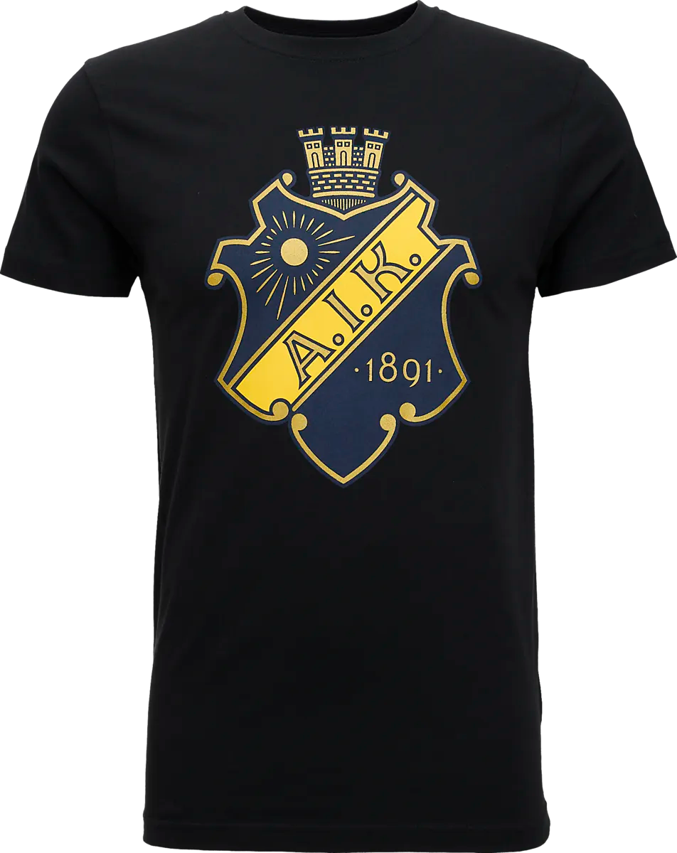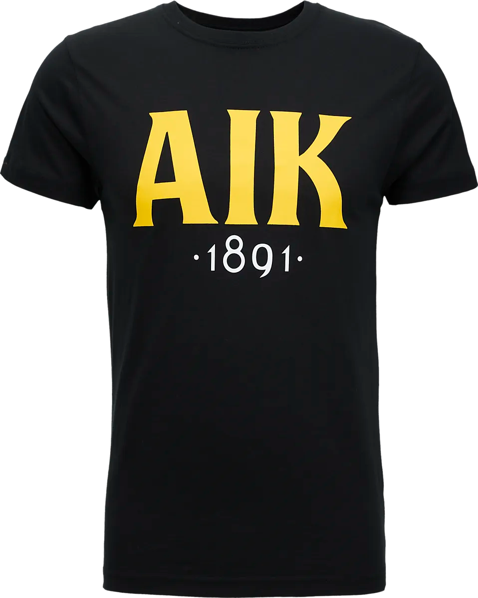 ● футболка ● Взрослые размеры ● Тонкая посадка ● Эластичная трикотажная горловина ● Принт AIK 1891 спереди. ● 100% хлопок Размеры: S, M, L, XL, XXL | Цвета: Черный