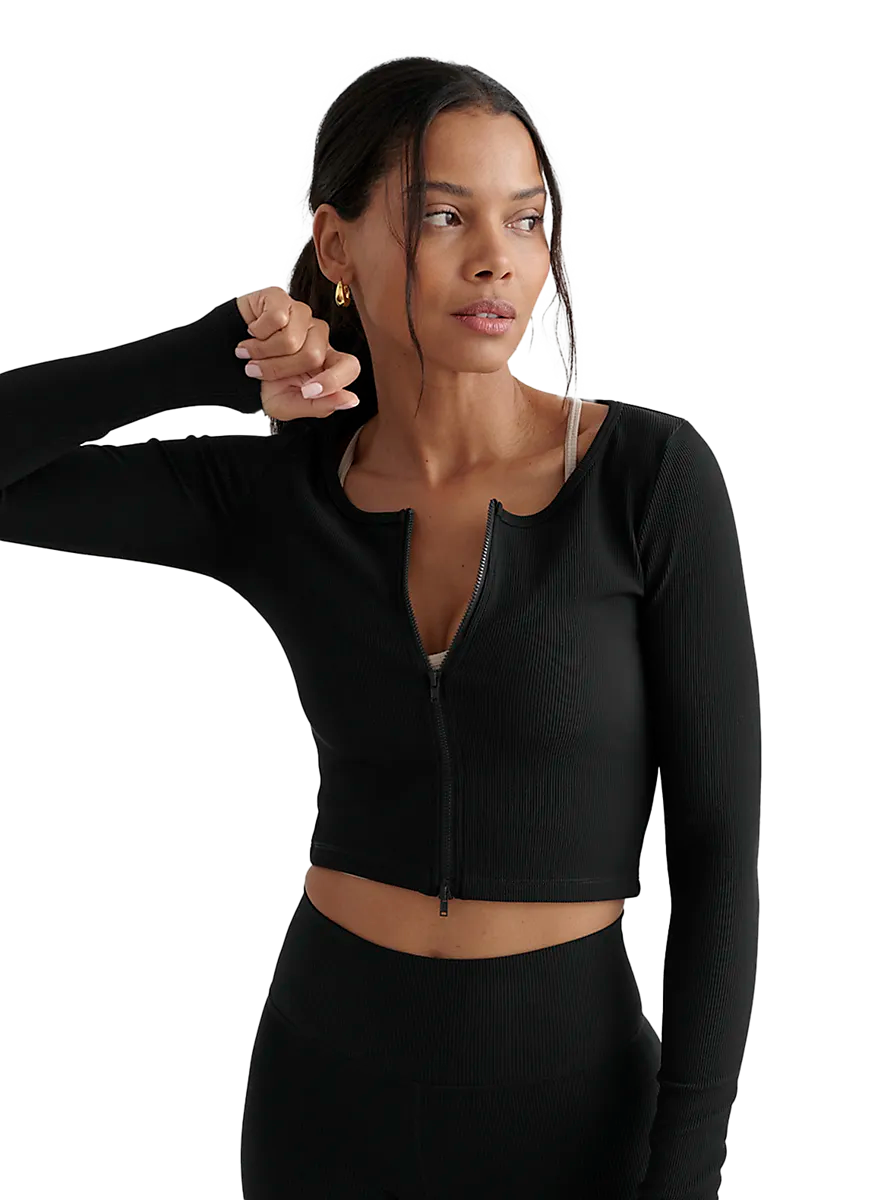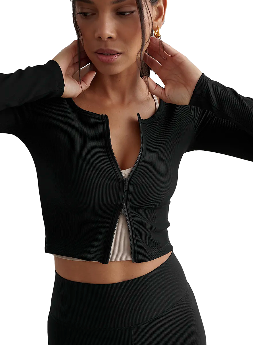 ● Тренировочная рубашка ● Женские размеры ● Короткая и эффектная модель. ● Двусторонняя молния ● 80% нейлон и 20% эластан. Размеры: XS, S, M, L, XL | Цвета: Черный
