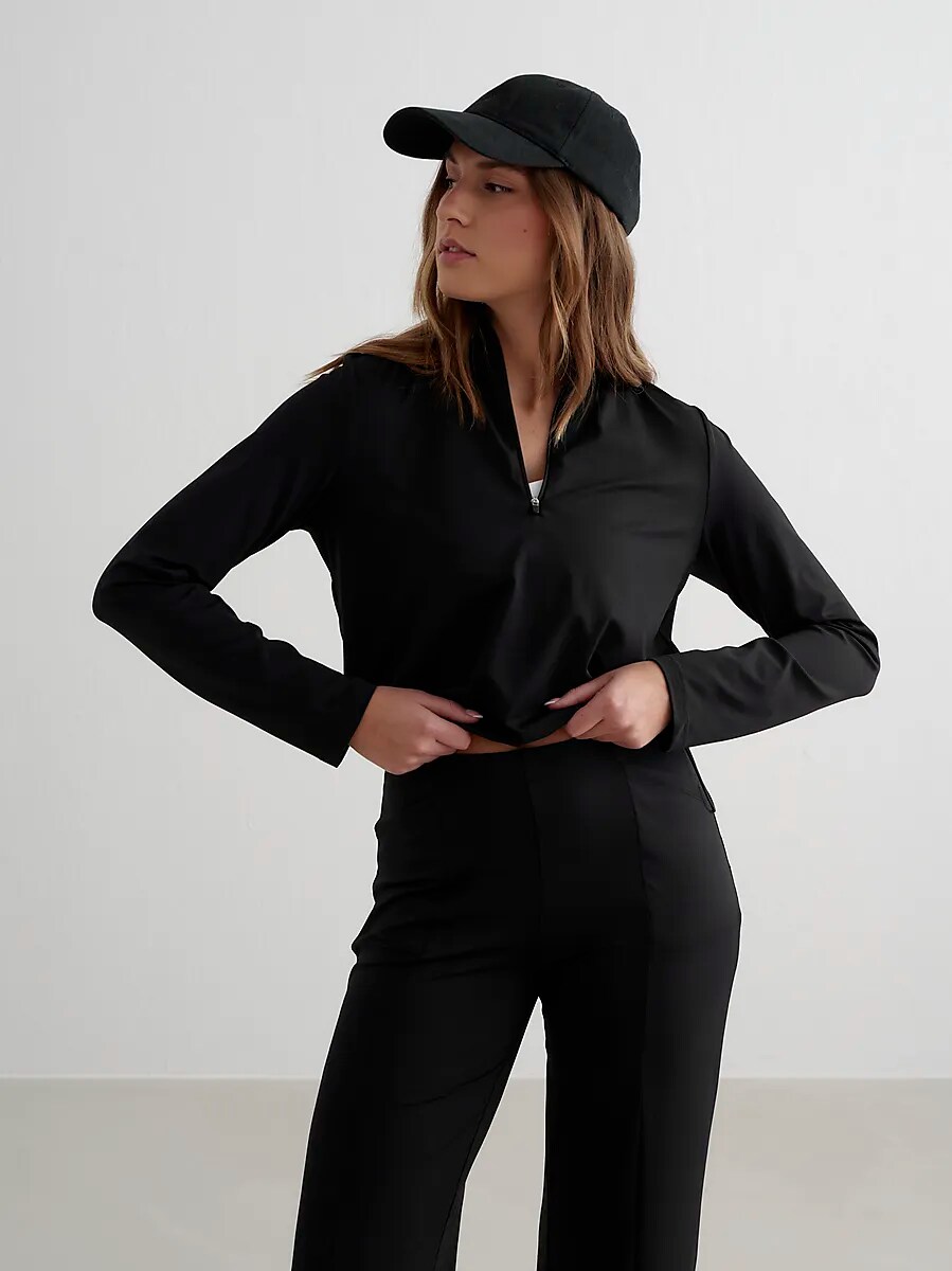 ● Тренировочная рубашка ● Женские размеры ● Короткая молния спереди. ● Регулируемый подол с помощью шнурков. ● Дышащий материал ● Гибкая ткань увеличивает свободу движений. ● 92% полиамид и 8% эластан. Размеры: S, M, L, XL | Цвета: Черный