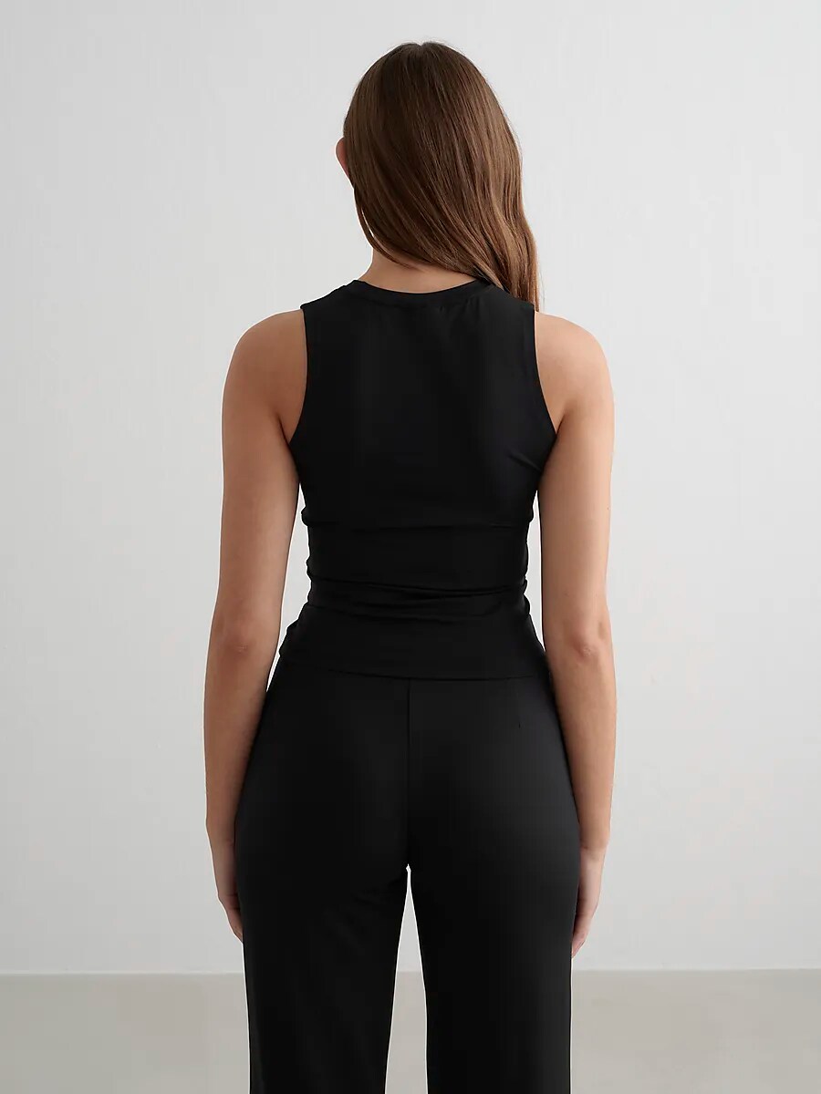 ● Тренировочная рубашка без рукавов ● Женские размеры ● Легкий и дышащий материал. ● Гибкая ткань увеличивает свободу движений. ● 92% полиамид и 8% эластан. Размеры: XL | Цвета: Черный