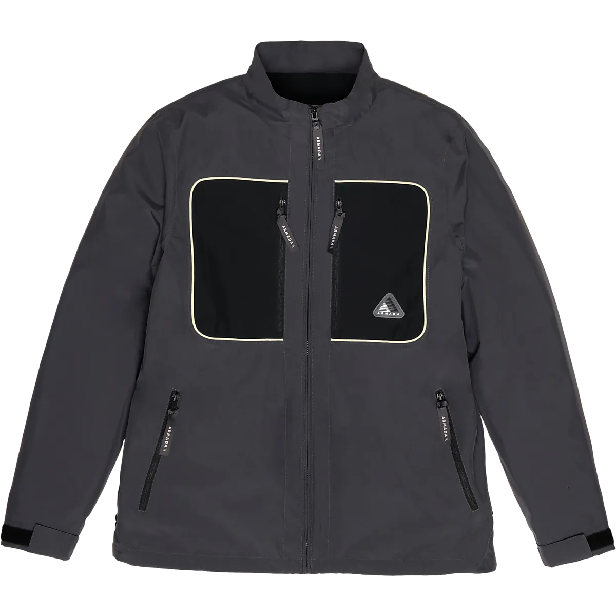 ● Куртка-ракушка ● Мужские размеры ● Водостойкий поверхностный материал (водяной столб 10 000 мм) ● Дышащий материал (10 000 г/м²/24 ч) ● Материал, одобренный Bluesign® ● Материал поверхности и подкладочная ткань: 100% полиэстер. Размеры: S, M, L, XL | Цвета: Антрацит/Черный