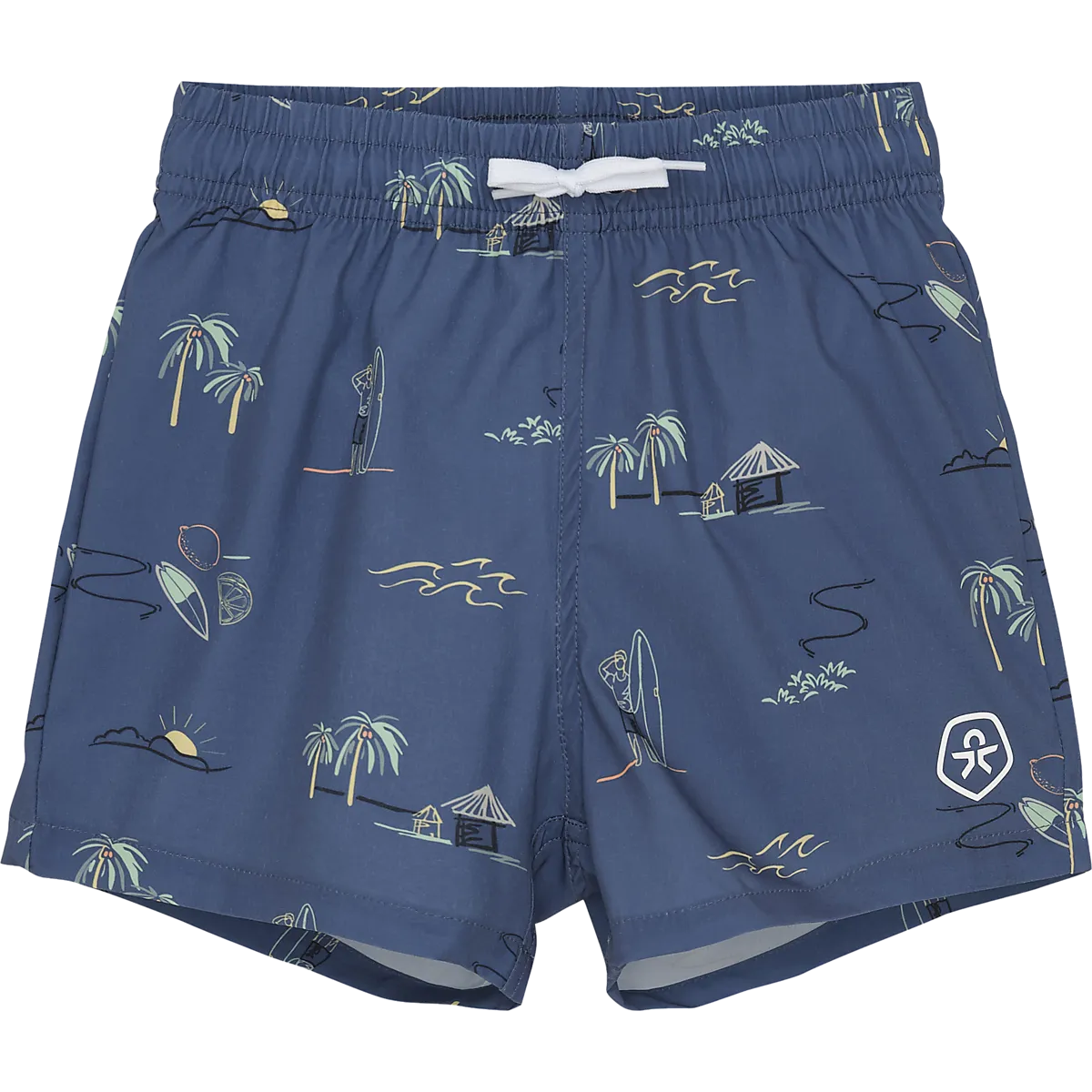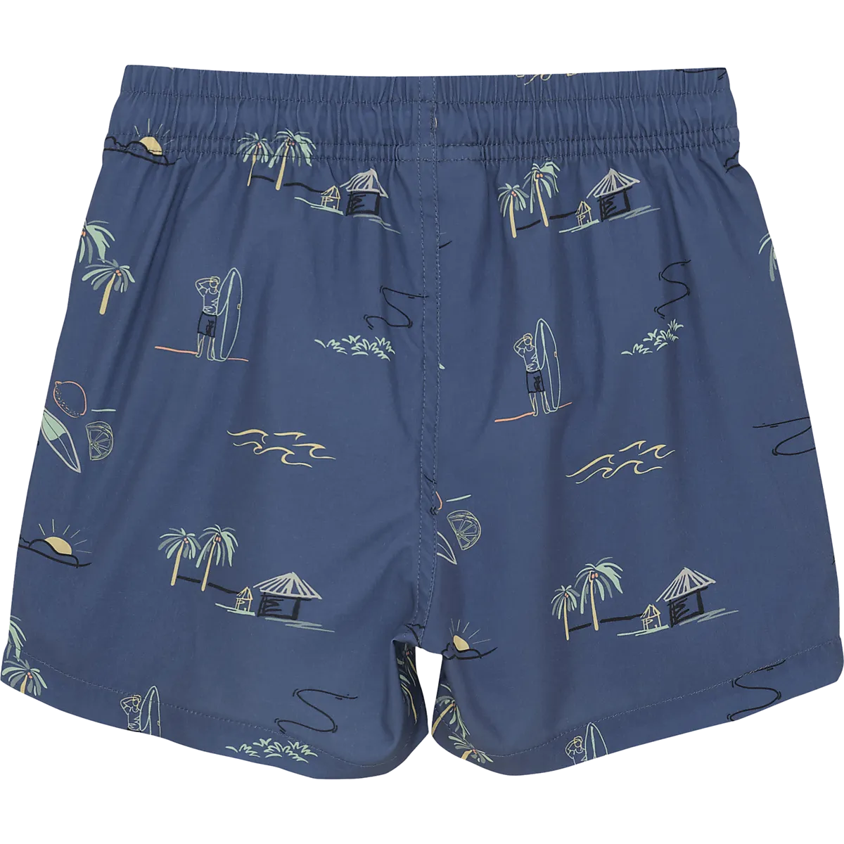 ● Плавательные шорты ● Детские размеры ● Свободная посадка ● Эластичная талия со шнурком ● Материал, сертифицированный OEKO-TEX® Standard 100. ● 90 % полиэстер (частично переработанный) и 10 % эластан. Размеры: 128, 140, 98, 122 | Цвета: Летняя песня, Винтаж Индиго