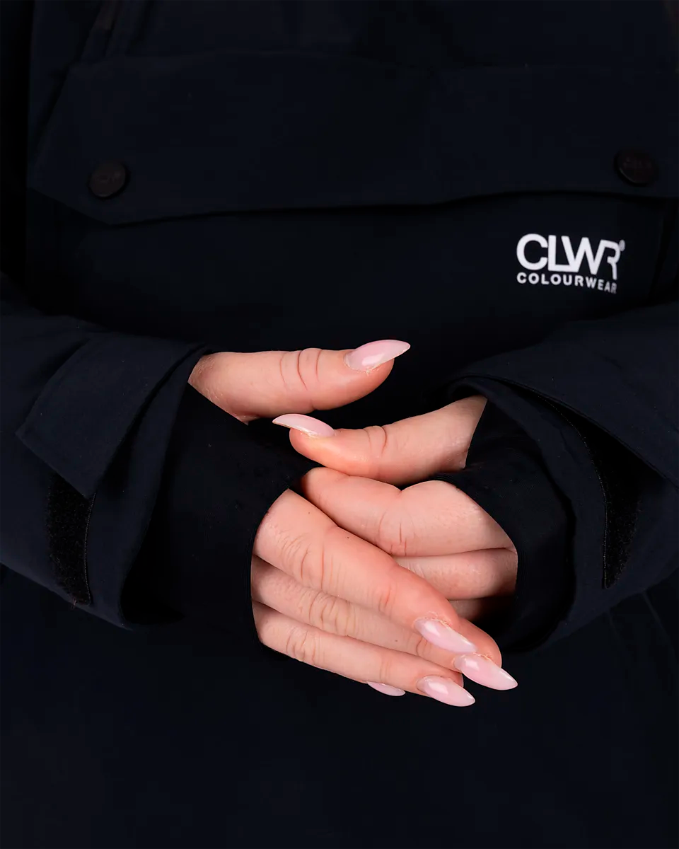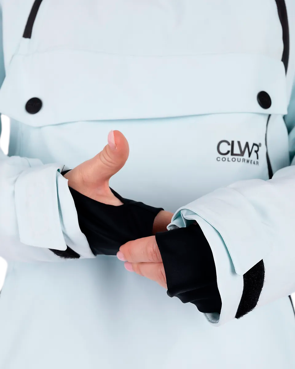 ● Эластичная резинка с отверстиями для больших пальцев на внутренней стороне манжет.