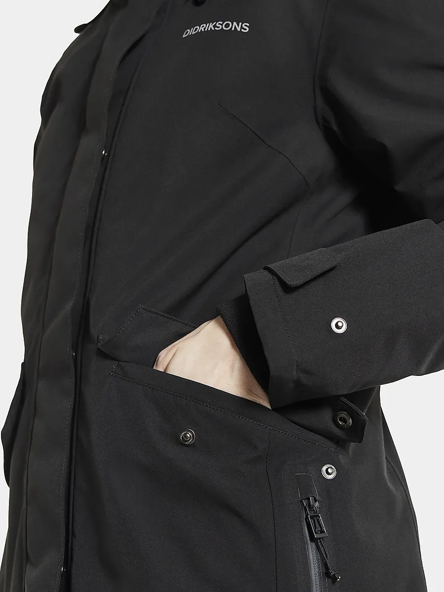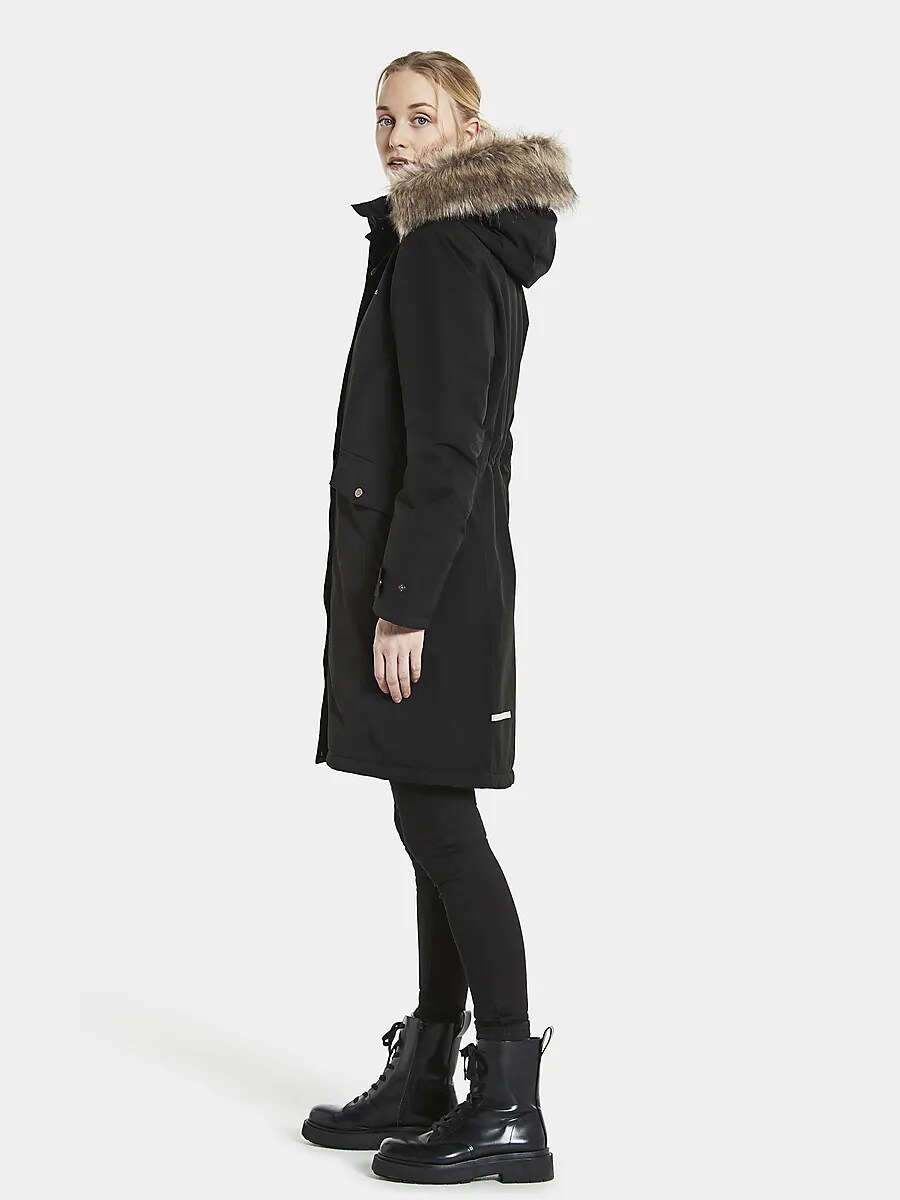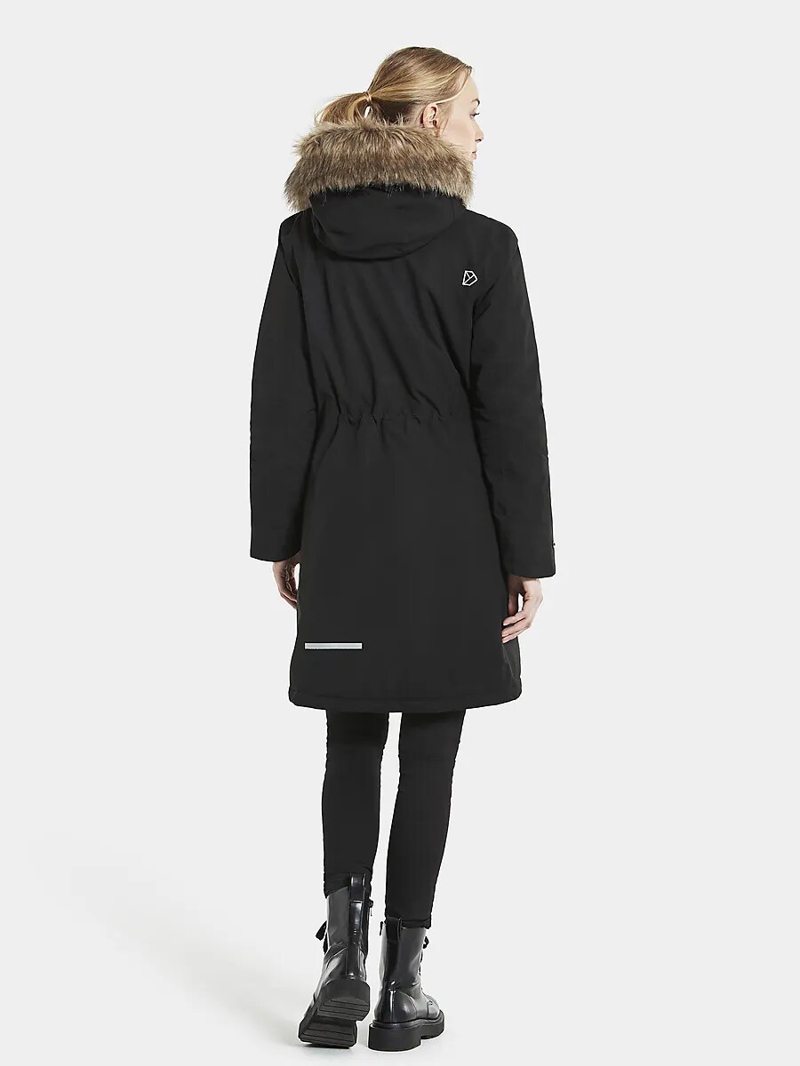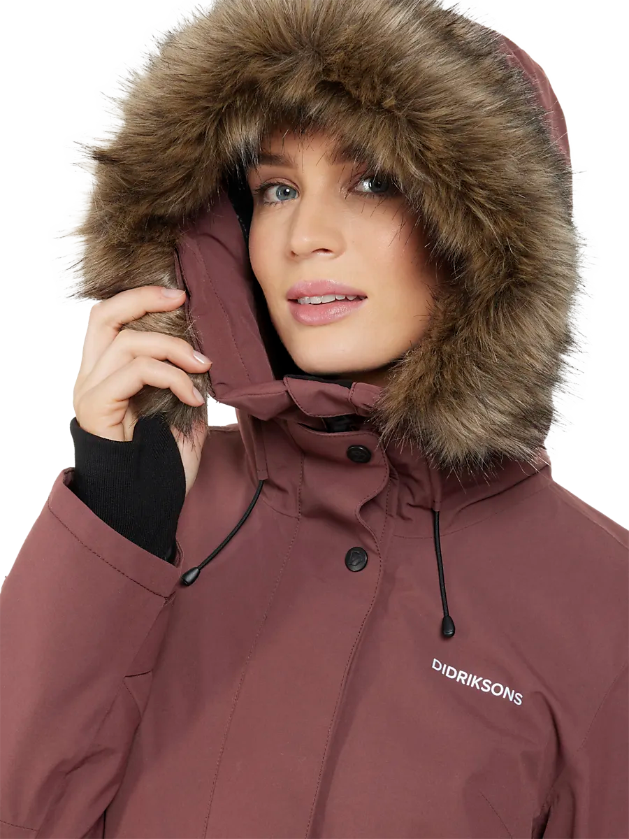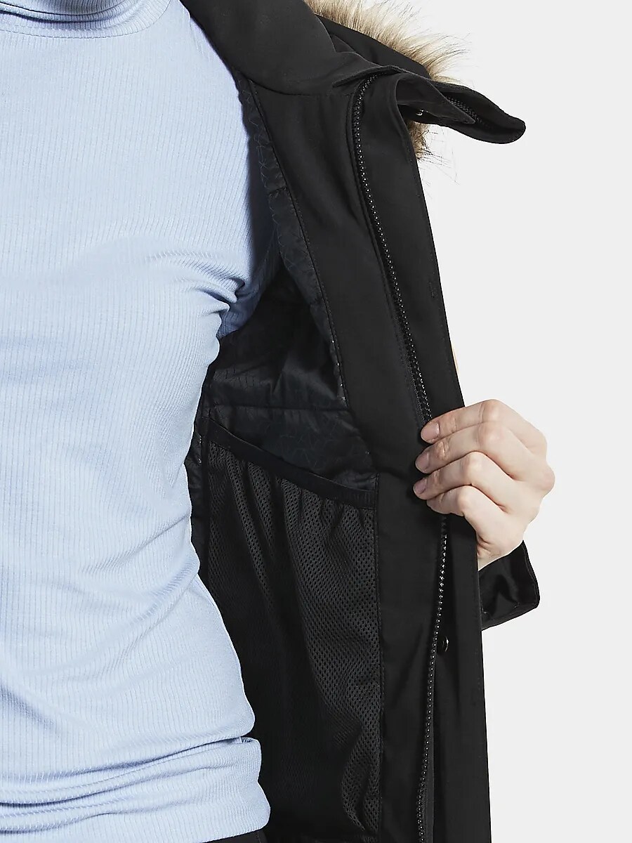 ● Регулируемый капюшон со съемной опушкой из искусственного меха.