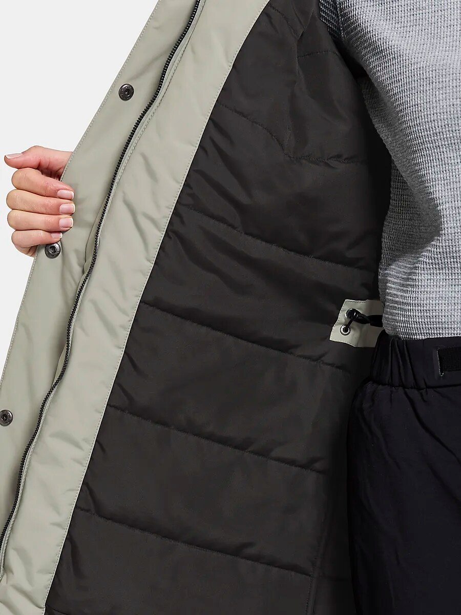 ● Куртка ● Женские размеры 36–44. ● Обивка из переработанного материала (180 г) ● Ветро- и водонепроницаемость (10 000 мм) ● Проклеенные водонепроницаемые швы ● Защитное лобовое стекло с кнопками ● Боковые карманы на пуговицах, внутренний карман на молнии. ● Материал поверхности: 100 % полиамид (50 % из которого переработано). Размеры: 38, 40, 42, 44 | Цвета: Увядший лист