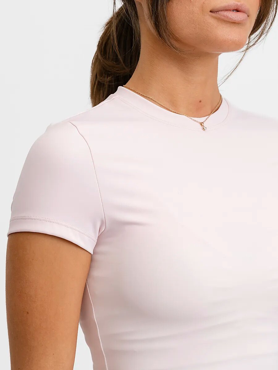 ● Тренировочная рубашка ● Женские размеры ● Высокий вырез ● Мягкий и эластичный маслянистый материал. ● 88% полиэстер и 12% эластан. Размеры: L, XL | Цвета: Розовый румянец