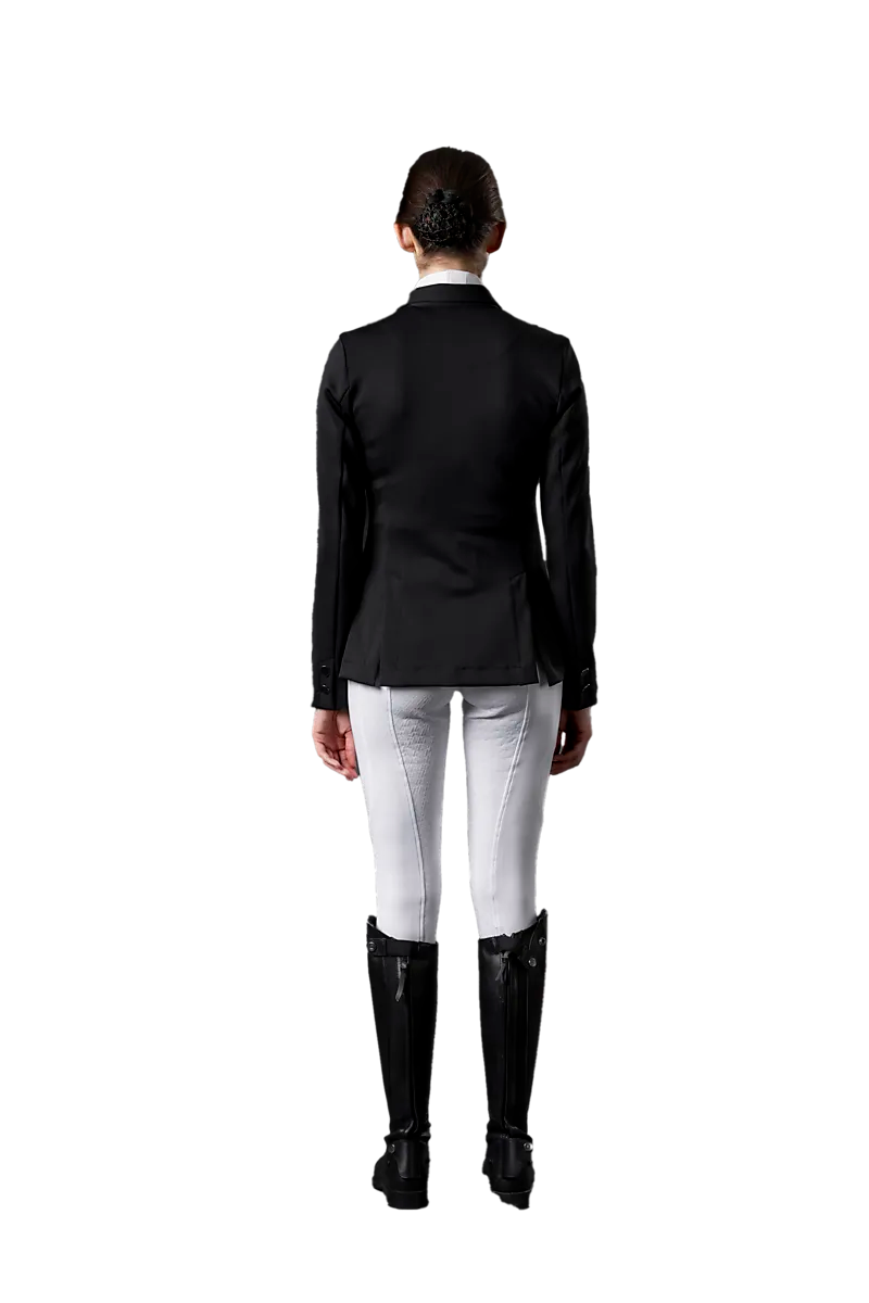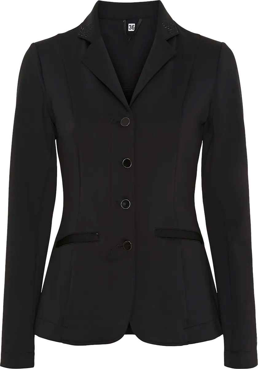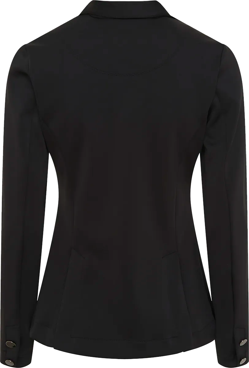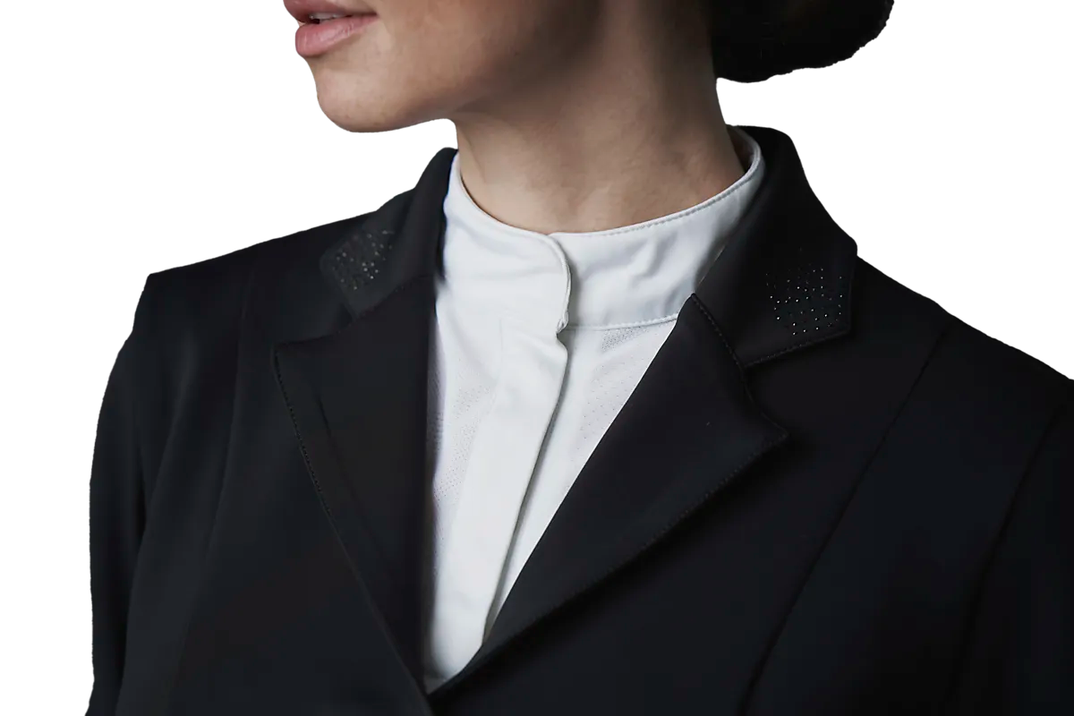 ● Гоночная куртка/гоночная куртка ● Женские размеры ● На воротнике сверкающее украшение из черных страз. ● Потайная молния и четыре пуговицы спереди. ● Передние карманы на молнии ● Гладкий, гибкий материал ● Два разреза сзади ● 78% полиамид и 22% эластан. Размеры: 36, 38, 40, 42 | Цвета: Черный