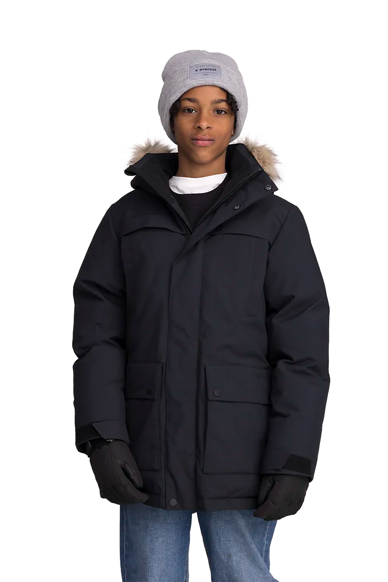 ● Съемный капюшон со съемной опушкой из искусственного меха.