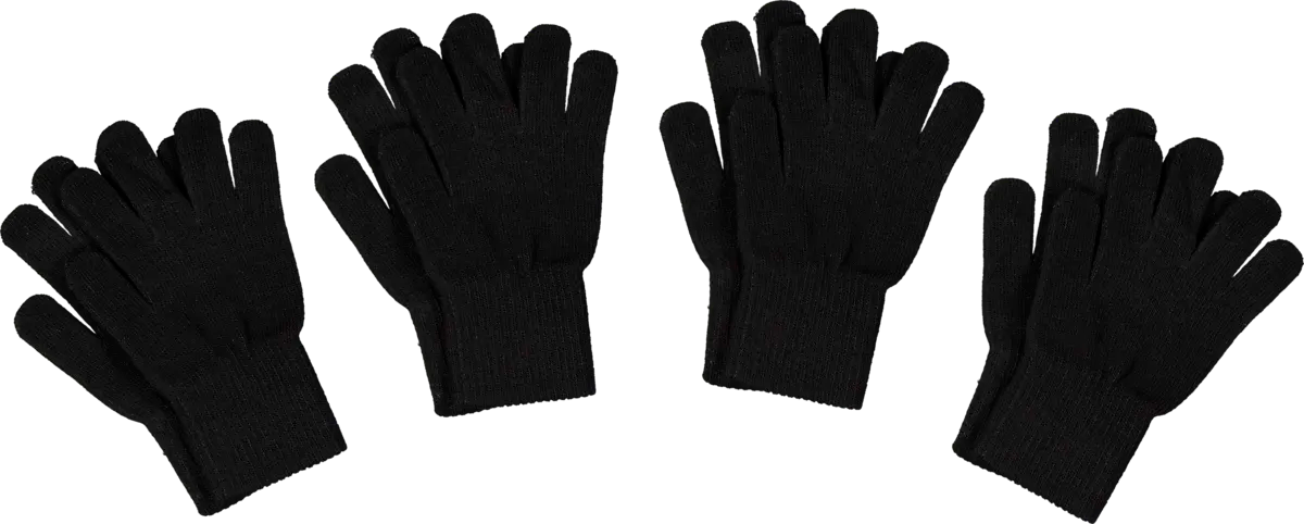 ● Перчатки ● Младший размер, один размер ● Удобная посадка ● 4 упаковки ● Адаптируется к рукам ● 95% акрил и 5% эластан. Цвета: Черный