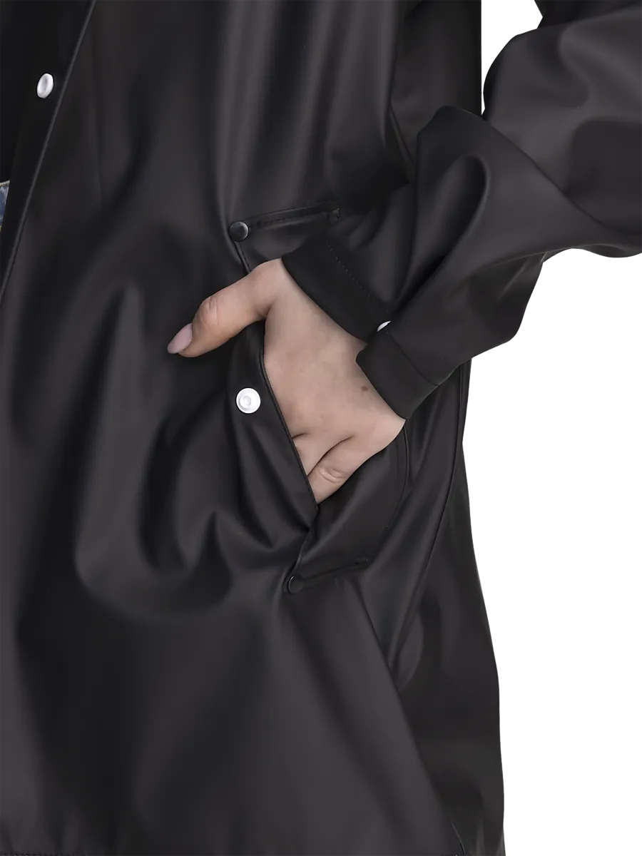 ● Плащ ● Размеры 134–170. ● Водонепроницаемость (водяной столб 5000 мм) ● Сварные водонепроницаемые швы ● Съемный капюшон ● Боковые карманы на кнопках ● Светоотражающие детали ● Длина спинки для размера 140: ок. 70 см. Размеры: 134, 140, 146, 152, 158, 164, 170 | Цвета: Черный