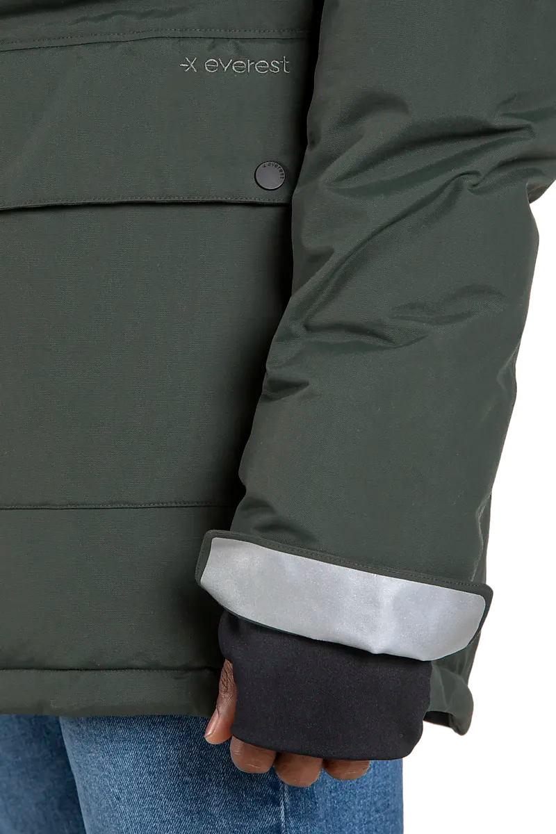 ● Два кармана с клапанами на кнопках, четыре кармана для грелок для рук и сетчатый карман внутри.
