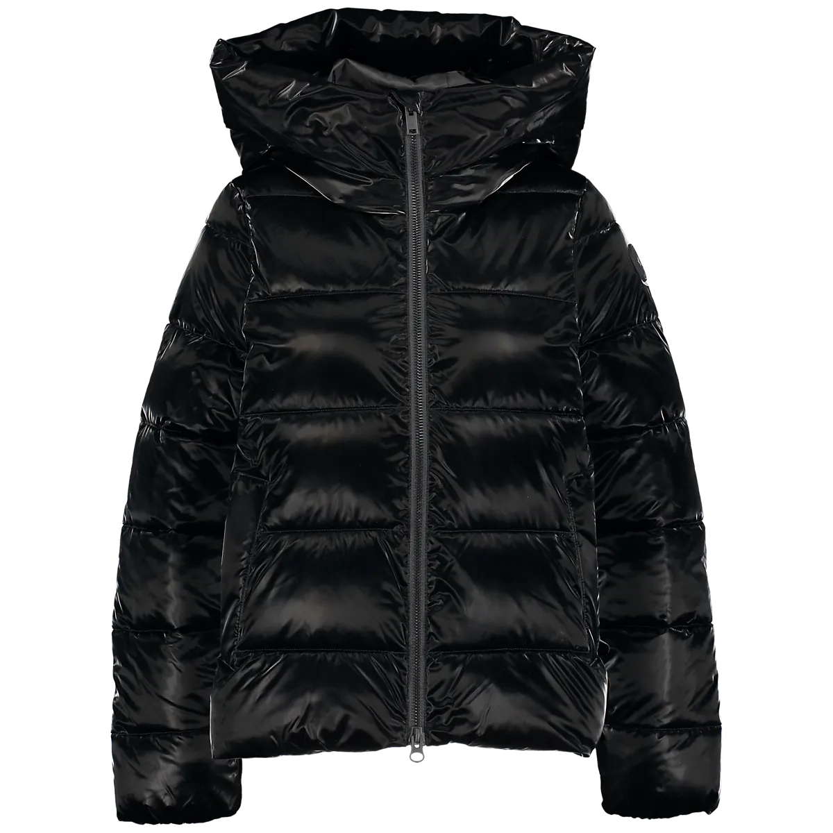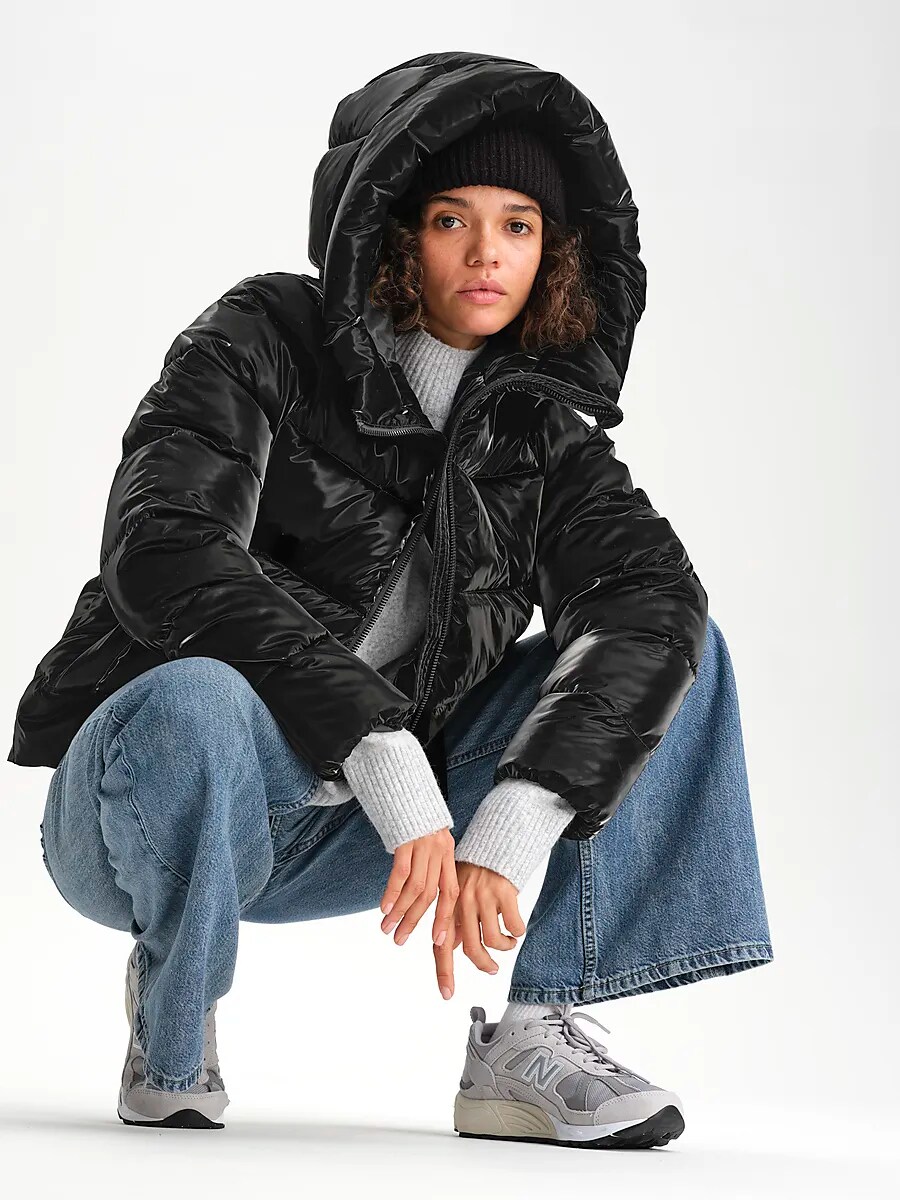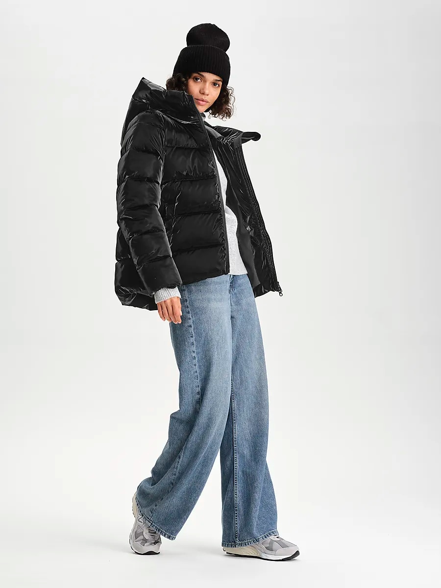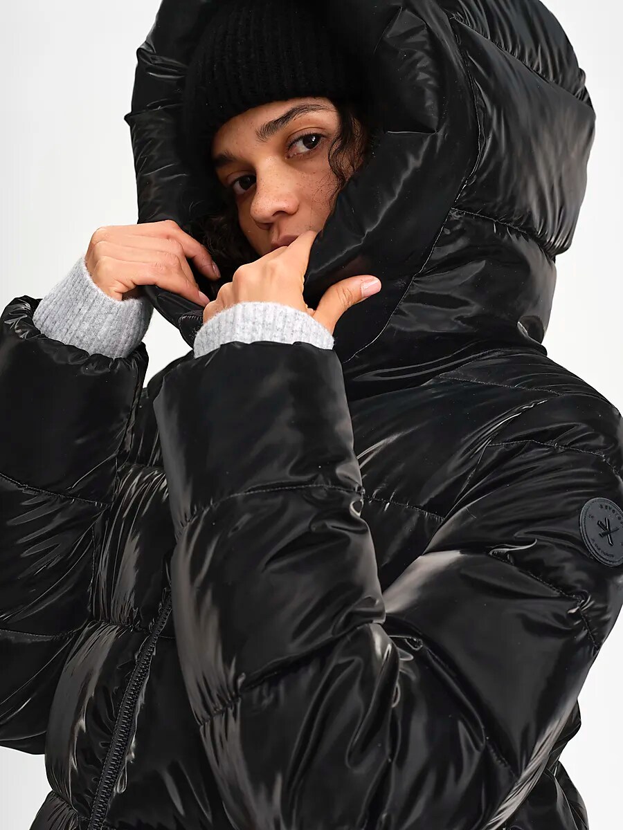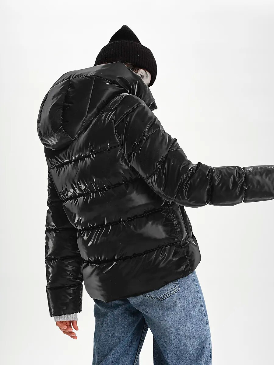 ● Стеганая куртка ● Женские размеры 32–48. ● Теплая синтетическая подкладка. ● ПУ покрытие; блестящая, бархатистая поверхность ● Регулируемый капюшон изнутри ● Двусторонняя молния ● Боковые карманы на молнии, светоотражающая лента во втором кармане. ● Длина спинки для размера 38: ок. 67 см. Размеры: 34, 46, 48 | Цвета: Черный