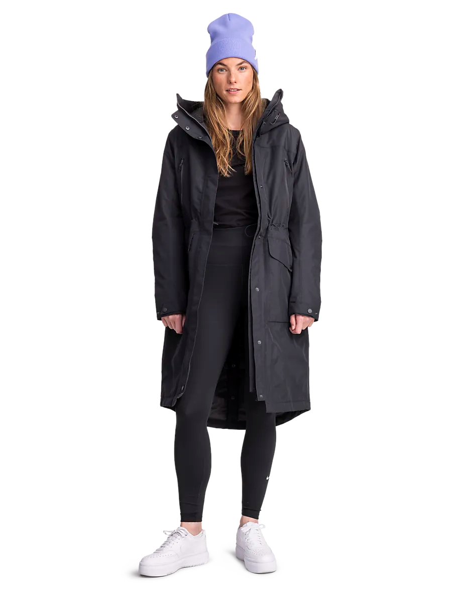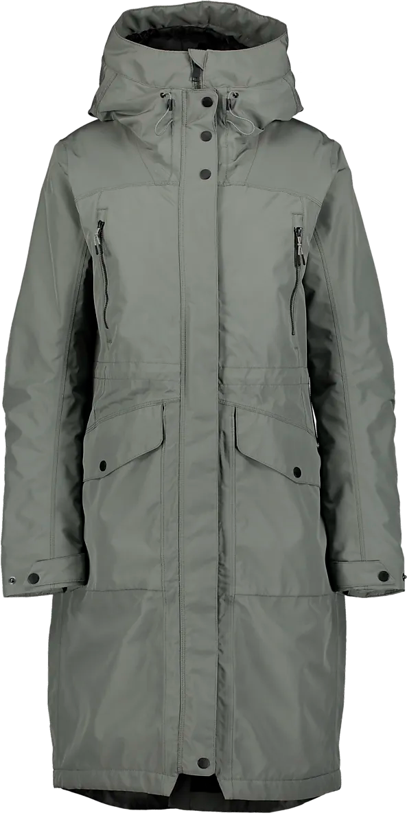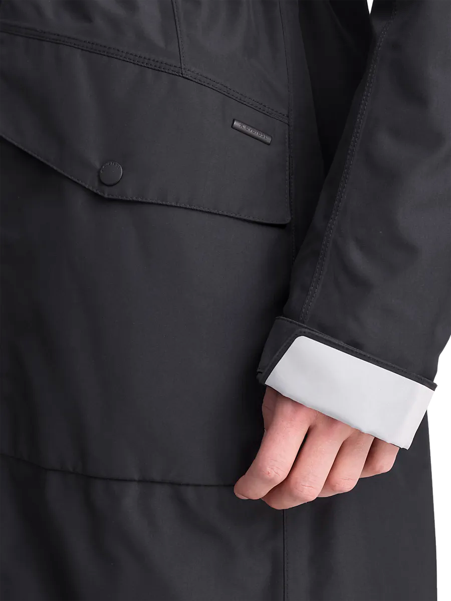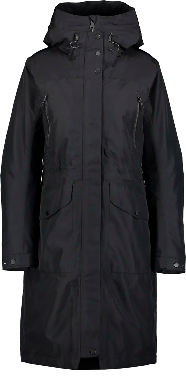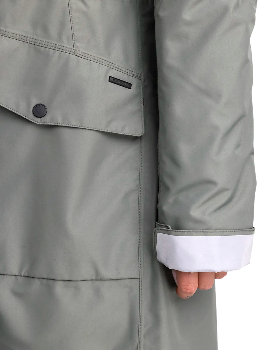 ● Куртка ● Женские размеры; 34–50 ● Слегка А-силуэта, длинная модель. ● Тонкая синтетическая подкладка. ● Ветро- и водонепроницаемость (10 000 мм) ● Проклеенные водонепроницаемые швы ● Откидные светоотражающие детали на манжетах. ● Длина спинки для размера 38: ок. 110 см. Размеры: 34, 36, 40 | Цвета: Черный, Хаки Серый