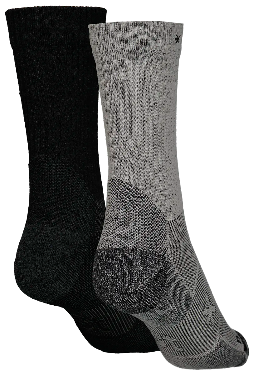 ● Технические носки ● Размеры 34–45. ● 2 упаковки ● Гибкая, удобная посадка ● Прочная резинка в области пятки и свода стопы. ● Удобная подушечка в пятке и носке ● 60 % шерсть, 20 % полиэстер и 8 % эластан. Размеры: 34-36, 43-45 | Цвета: Черный/Серый