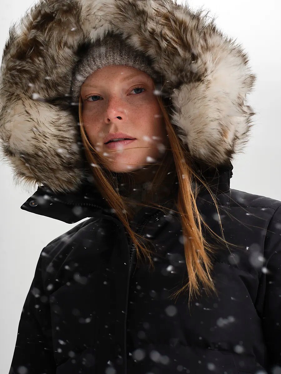 ● Капюшон со съемным искусственным мехом.