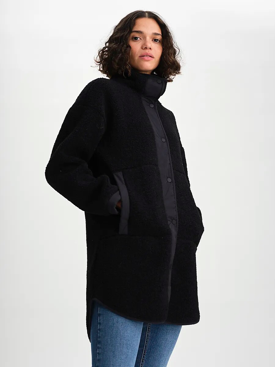 ● Ворсовая куртка ● Женские размеры ● Немного квадратный крой ● Ворс снаружи, мягкий флис внутри. ● Высокий и теплый воротник. ● Закрывается на кнопки спереди. ● Детали ткани ● Два боковых кармана ● Закругленный подол Размеры: XXS, XS, S, M, L, XL, XXL | Цвета: От белого, Черный