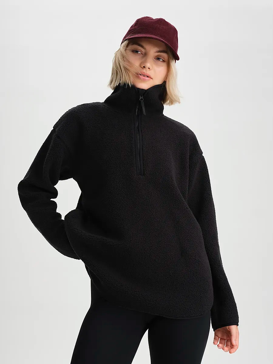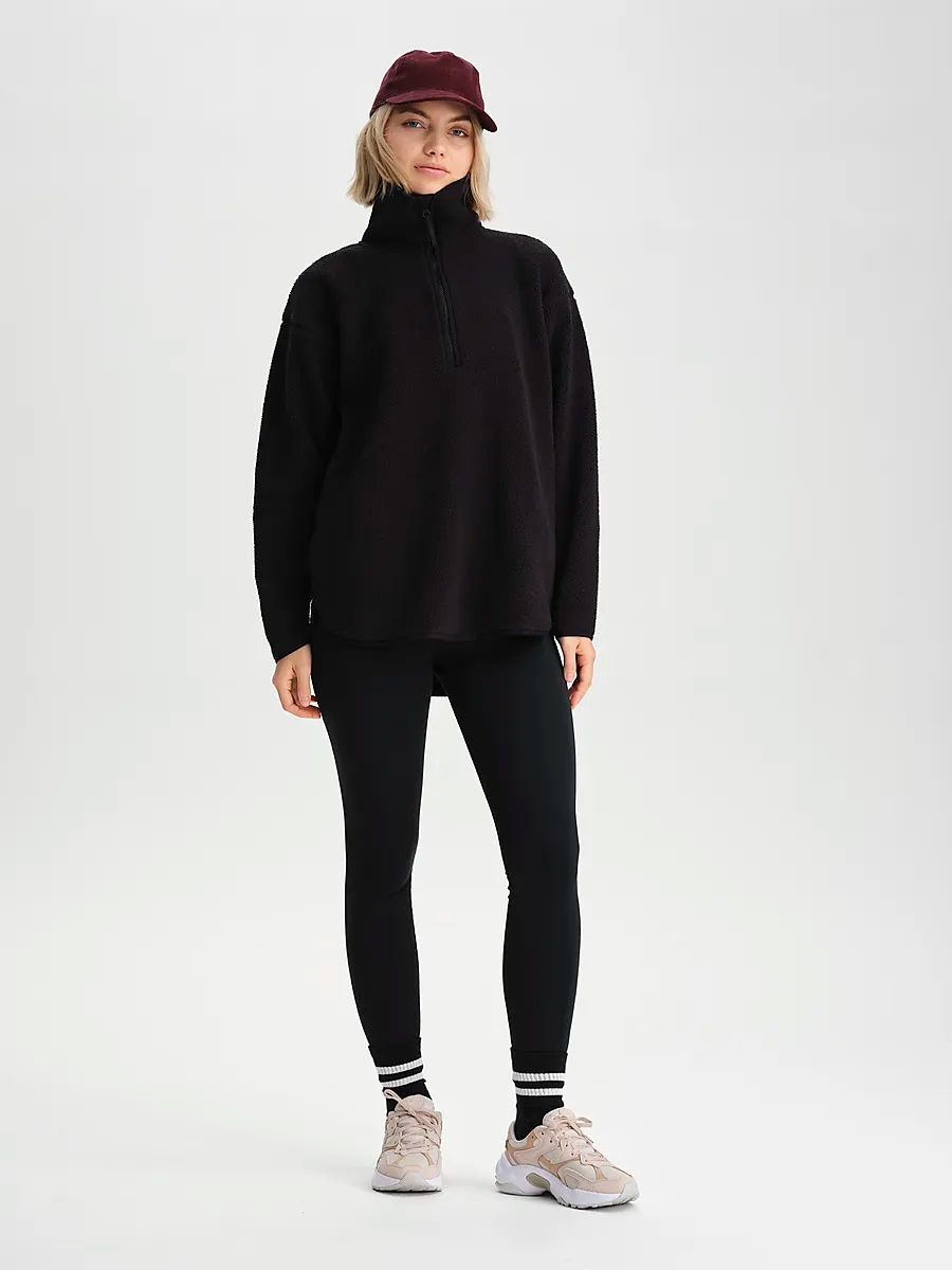 ● Флис ● Женские размеры ● Немного квадратный крой ● Теплоизоляционная конструкция ● Высокий воротник и молния на шее. ● Два боковых кармана ● Закругленный подол ● 100% переработанный полиэстер Размеры: XXS | Цвета: Черный