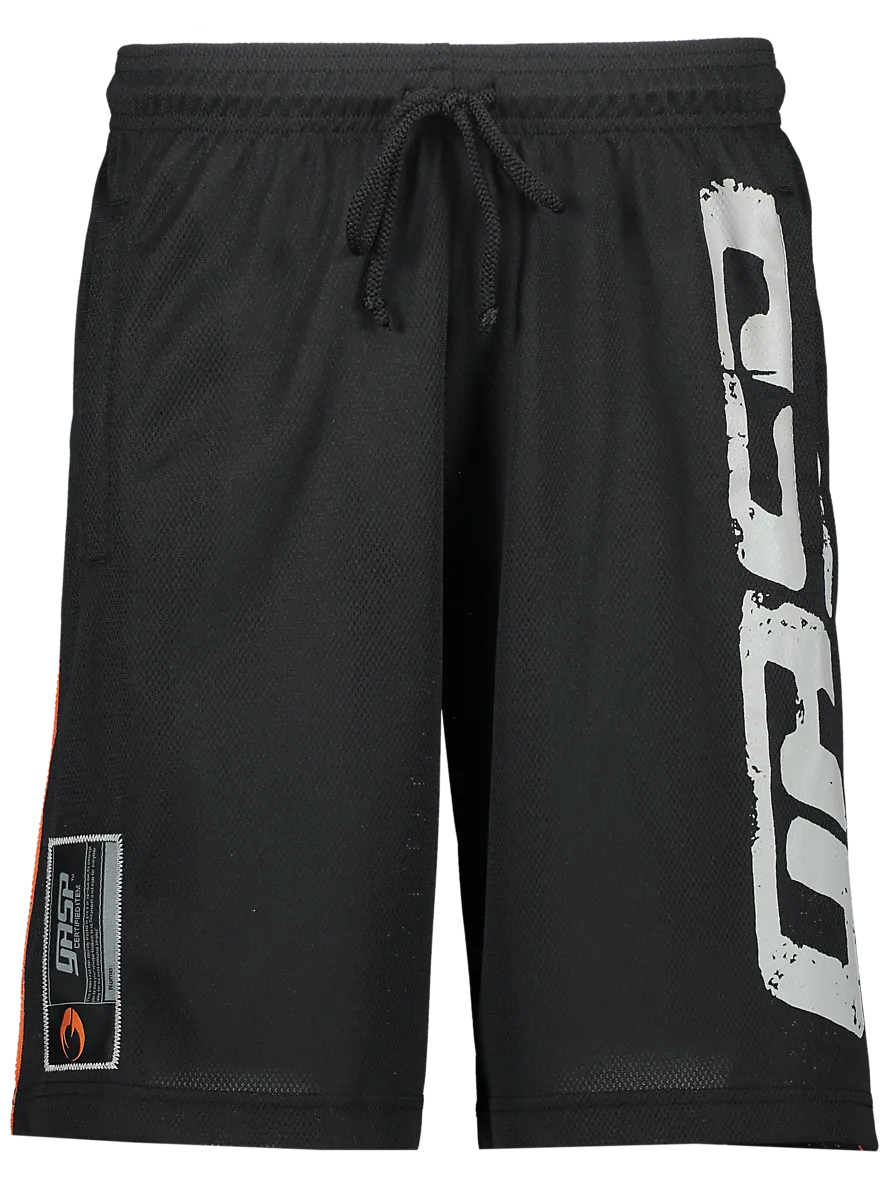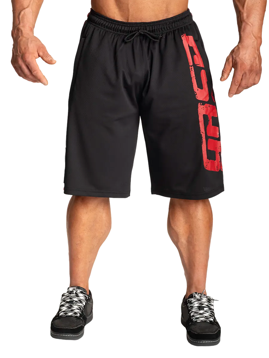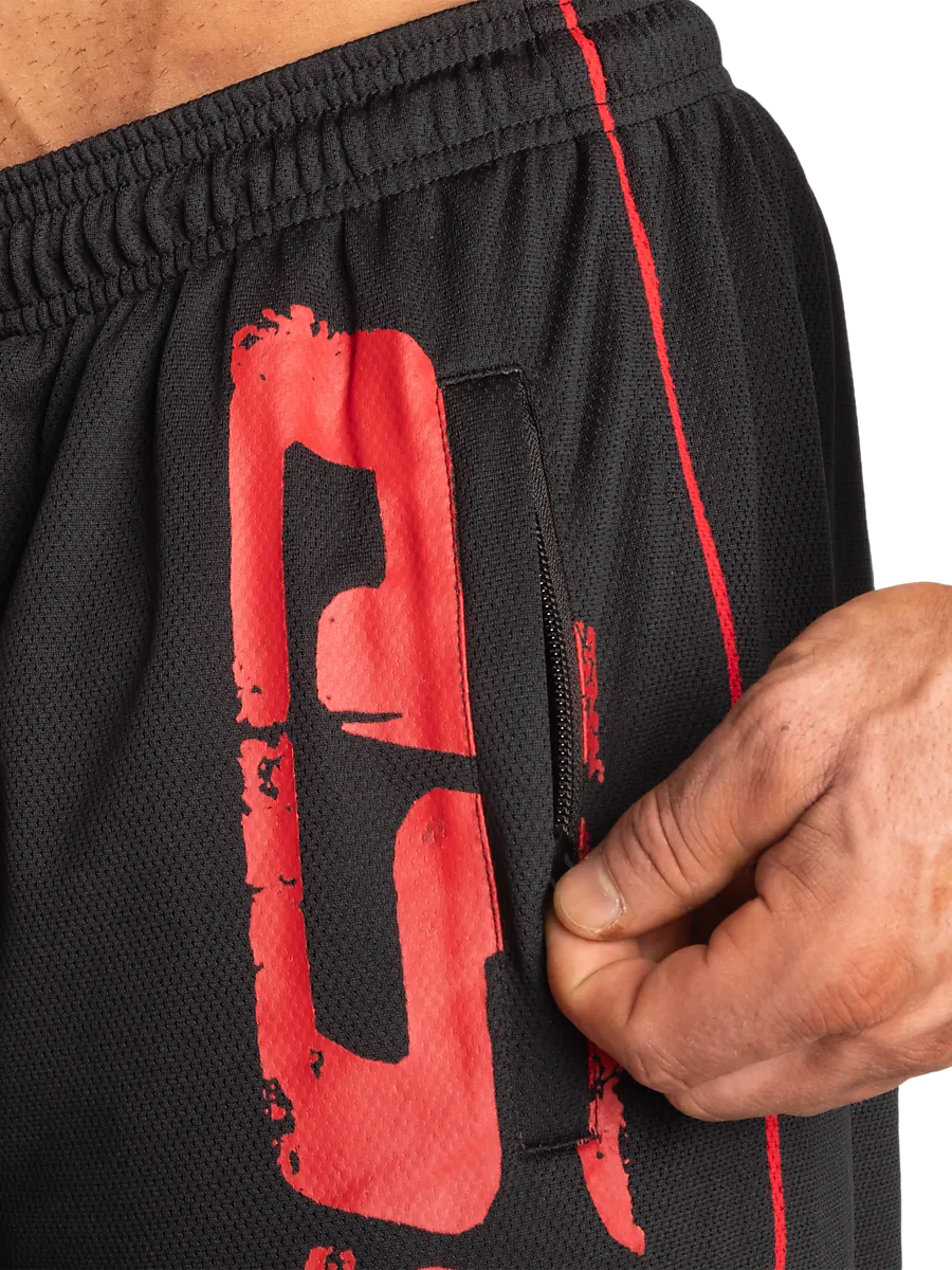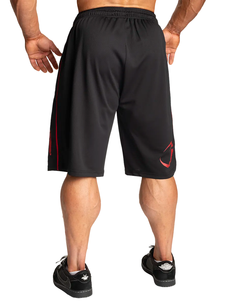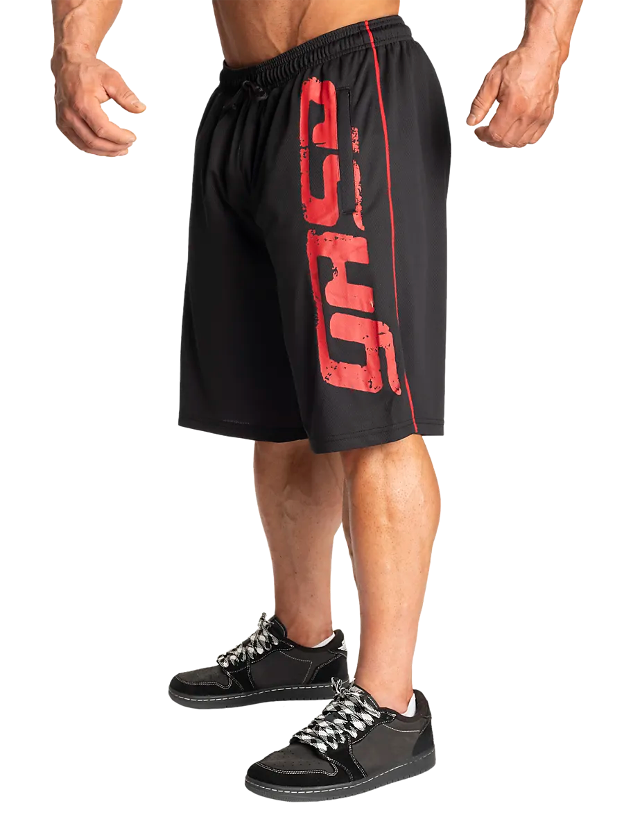 ● Тренировочные шорты ● Мужские размеры ● Прочный и дышащий сетчатый материал. ● Эластичная лента и шнурок на талии. ● Карманы на молнии ● 100% полиэстер Размеры: S, M, L, XL | Цвета: Серый, Черный, Черный/красный