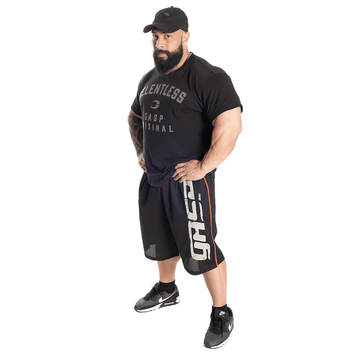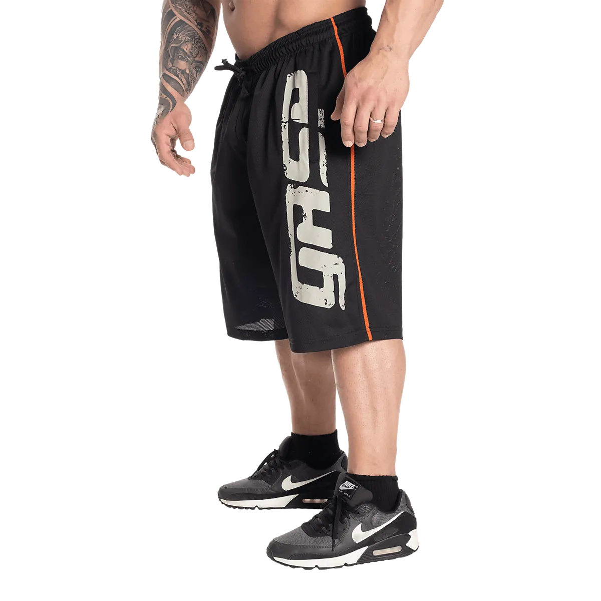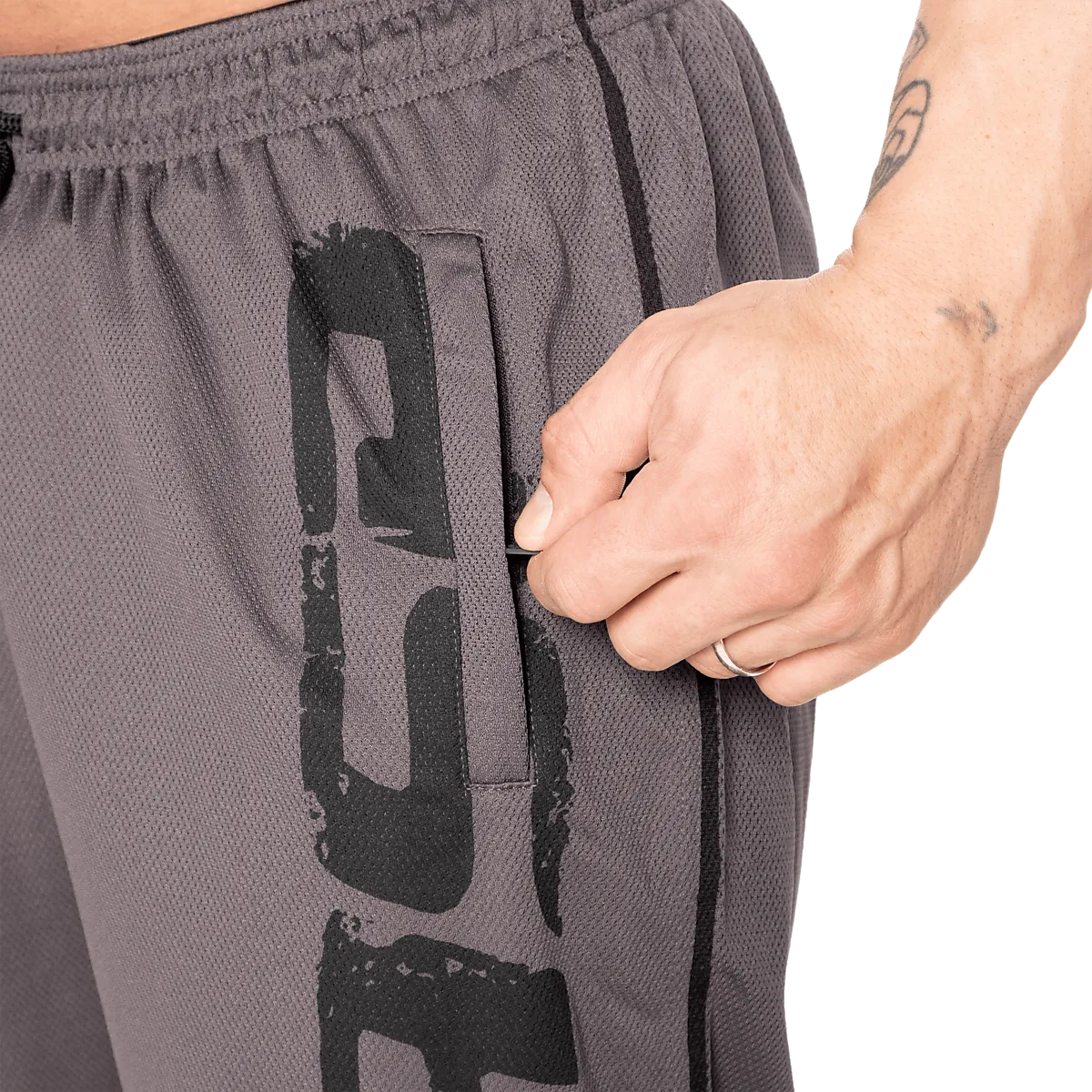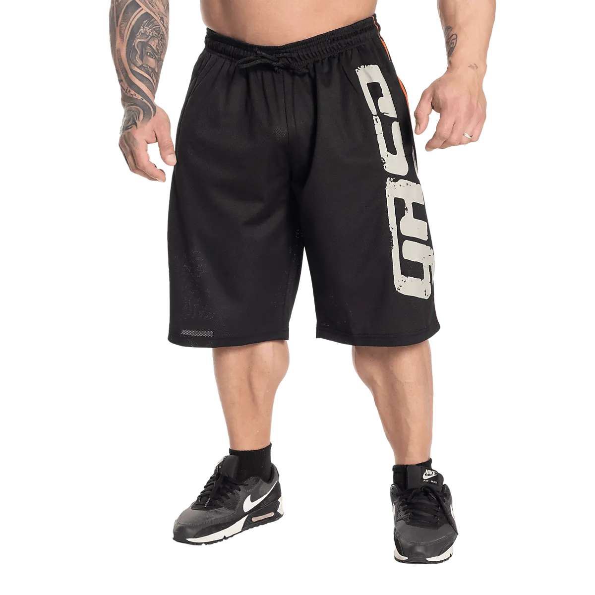 ● Тренировочные шорты ● Мужские размеры ● Прочный и дышащий сетчатый материал. ● Эластичная лента и шнурок на талии. ● Карманы на молнии ● 100% полиэстер Размеры: S, M, L, XL | Цвета: Серый, Черный, Черный/красный