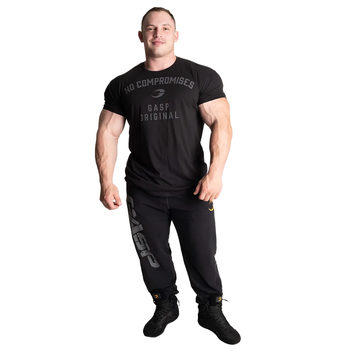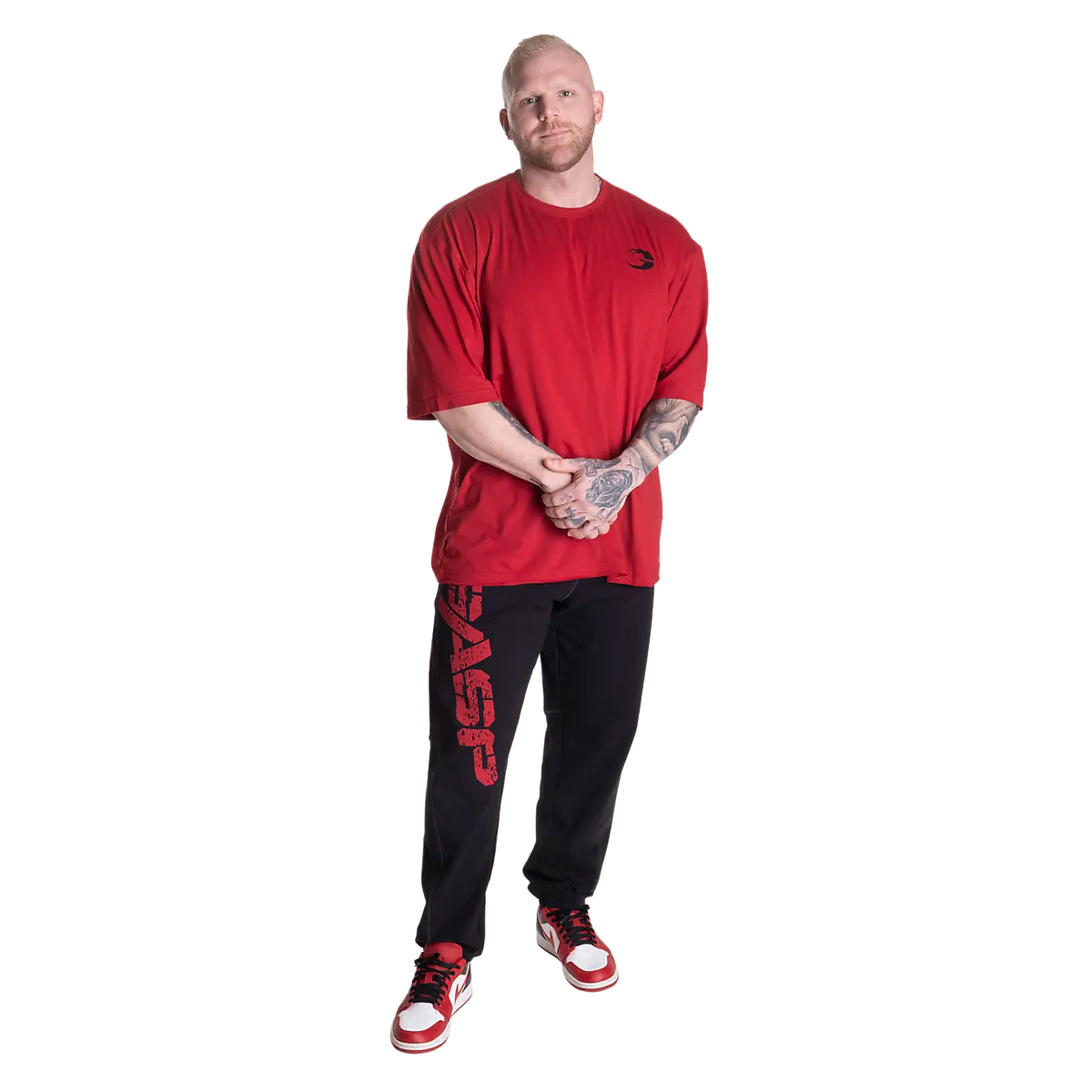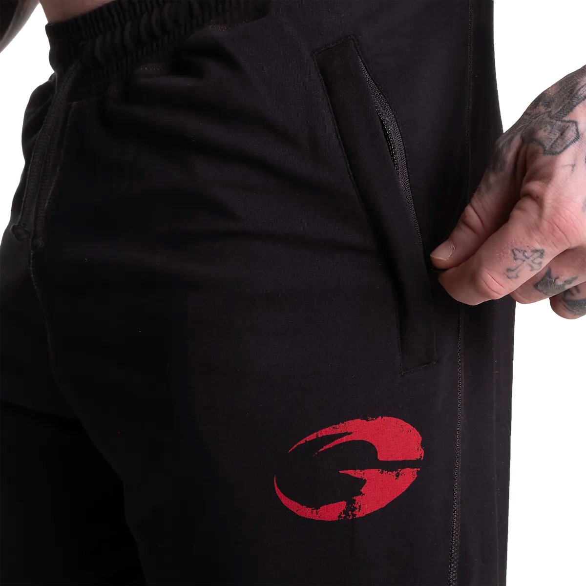 ● Тренировочные брюки ● Мужские размеры ● Эластичная лента и шнурок на талии. ● Боковые карманы на молнии ● Гибкие отверстия для ног ● 60 % хлопок, 36 % полиэстер и 4 % эластан. Размеры: S, M, L, XL, XXL | Цвета: Черный, Серый Меланж, Черный/Красный