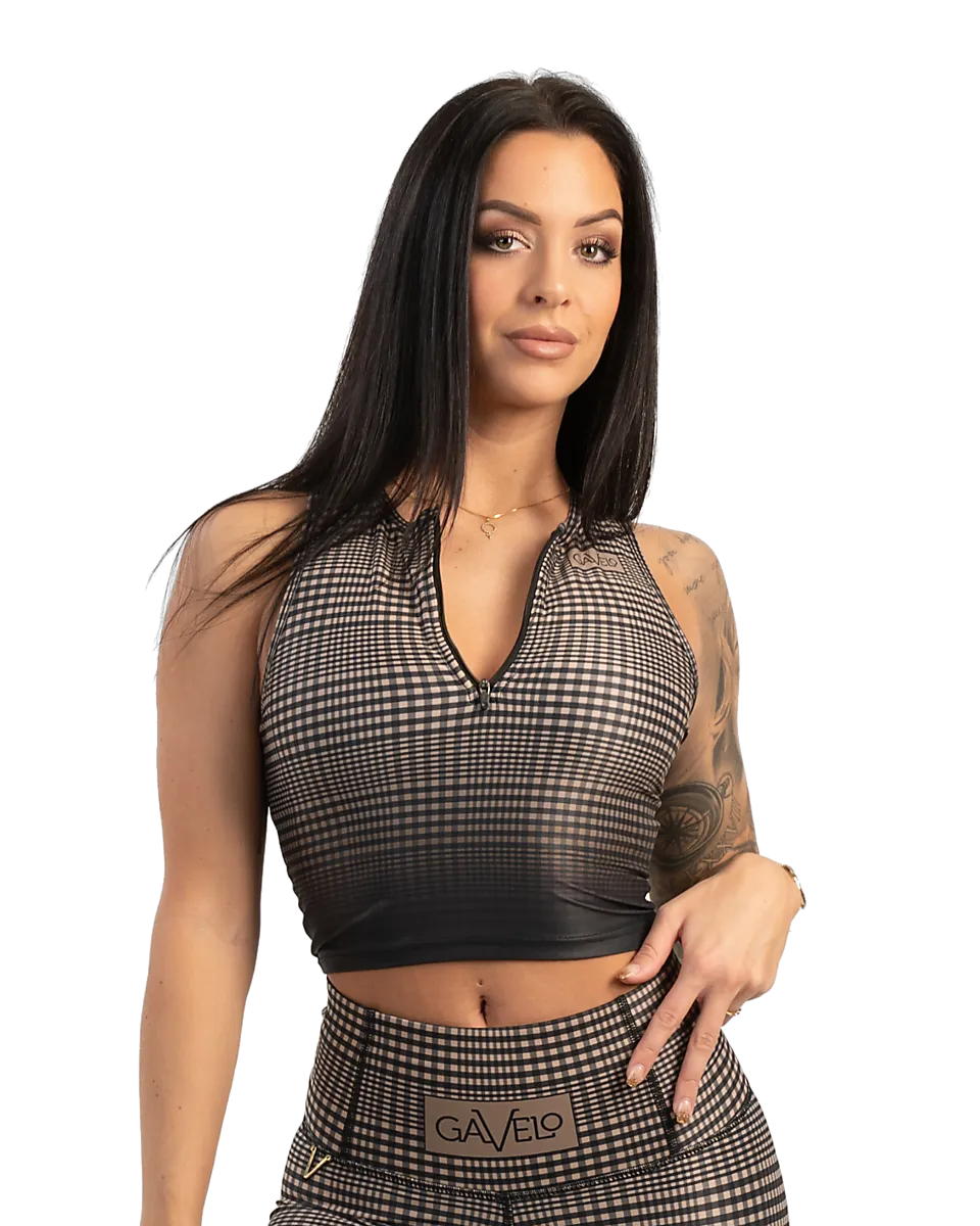 ● Тренировочная рубашка без рукавов ● Женские размеры ● Короткая и эффектная модель. ● Часть жилета ● Молния на вырезе Размеры: XS, S | Цвета: Коричневый/Черный