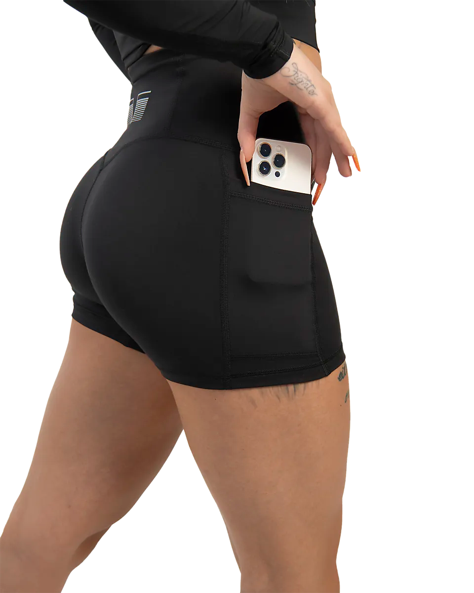 ● Тренировочные шорты ● Женские размеры ● Удобная посадка ● Боковые карманы ● 80% полиэстер и 20% эластан. Размеры: XS, S, M, L | Цвета: Черный