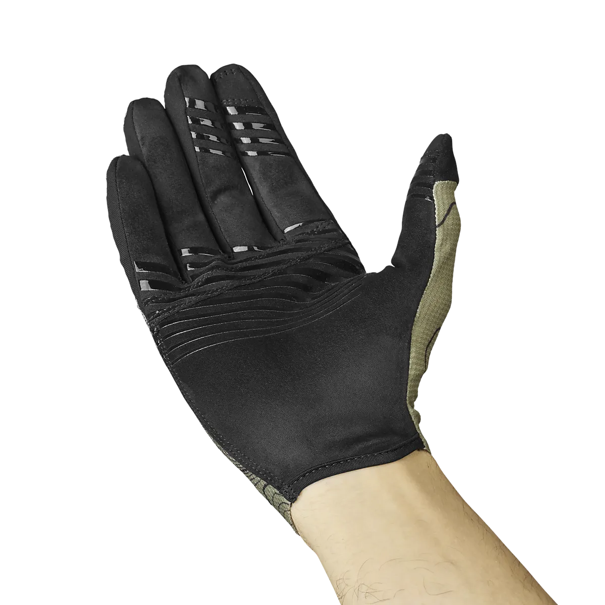 ● Велосипедные перчатки ● Взрослые размеры ● Силиконовый принт на ладони для лучшего сцепления. ● Усиленные кончики пальцев для большей прочности. ● Кончики пальцев подходят для использования с сенсорным экраном ● Дышащий сетчатый материал; крутой комфорт ● Материал: Ладонь: 100 % полиэстер. Спинка: 70 % полиэстер, 20 % полиамид, 10 % эластан. Размеры: XS, S, M, L, XL | Цвета: Черный, Оливково-зеленый