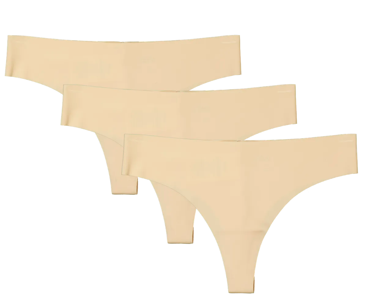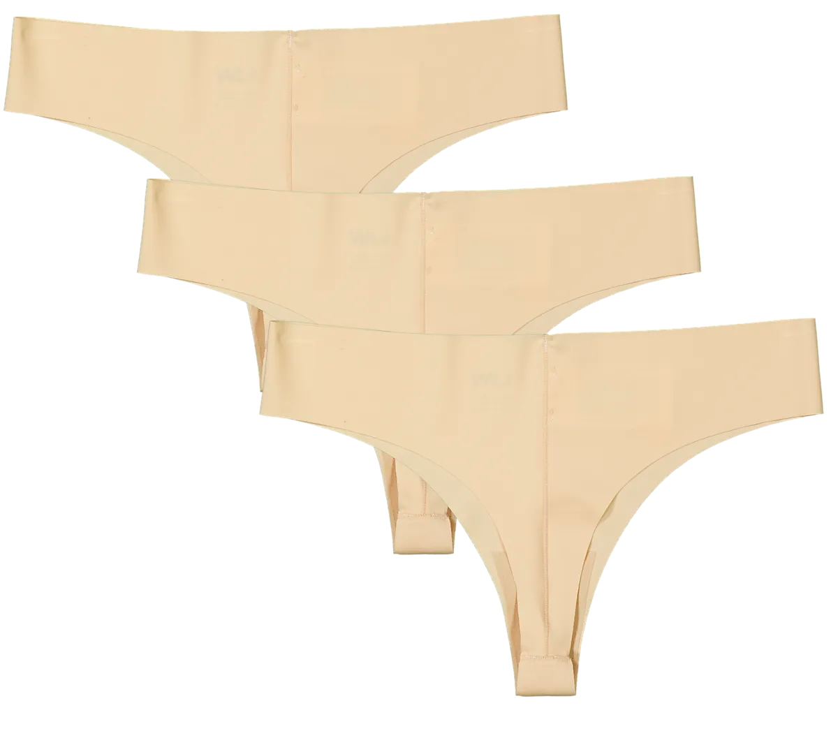 ● Стринги ● Женские размеры ● 3 упаковки ● Бесшовный дизайн ● Область промежности на подкладке ● 70% нейлон и 30% эластан. Размеры: XS, L, XL, S, M | Цвета: Черный, Белый, Бежевый